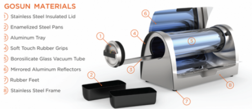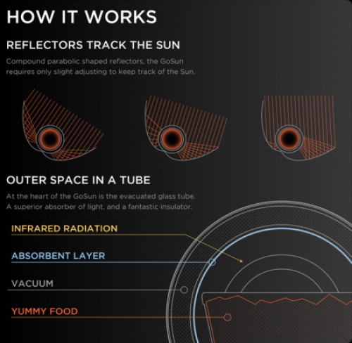 普通家庭燒烤架很容易將食物過度燒烤而使其變味,而且沾滿油漬,不好清洗。GoSun是一款創(chuàng)新型太陽(yáng)能燒烤架,可將能量全部集中到中間的食物碗上,可烘焙、可蒸煮;更值得一提的是,它內(nèi)置相變材料,可將多余的熱量?jī)?chǔ)蓄起來(lái),即便太陽(yáng)不那么強(qiáng)烈時(shí)也可繼續(xù)享受美食。