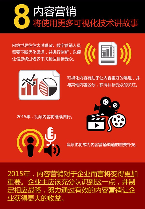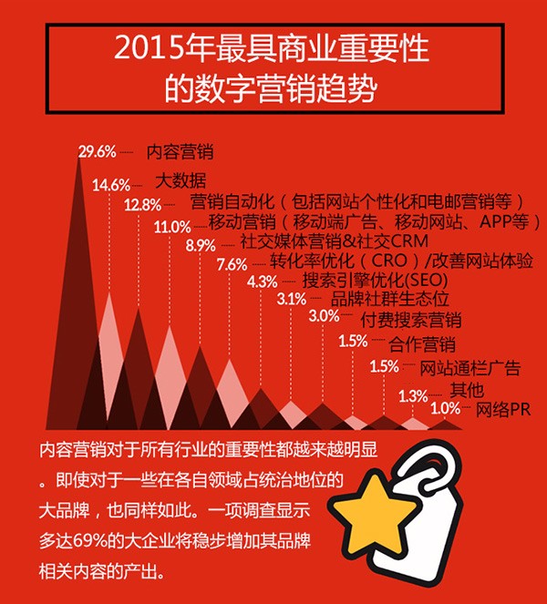2015 年,最具商業(yè)重要性的數(shù)字趨勢是什么?不論你是專注于社會(huì)化媒體、搜索引擎優(yōu)化還是互聯(lián)網(wǎng)營銷,構(gòu)建屬于你自己的數(shù)字內(nèi)容營銷策略與系統(tǒng)都非常必要。