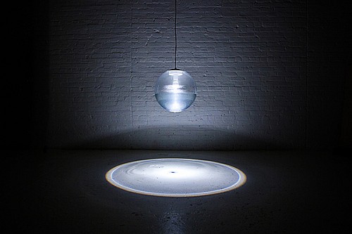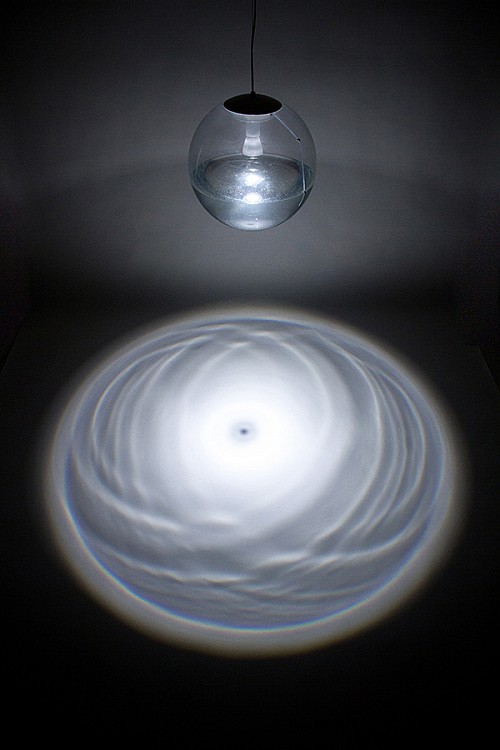 一個(gè)以自然靈感為設(shè)計(jì)的燈具,吊燈用水打造一個(gè)波光漣漪的效果。Rain Lamp整體是一個(gè)透明的圓球,內(nèi)置一個(gè)投射LED 燈泡和一個(gè)打造“漣漪效果”的裝置。通過裝置水會(huì)從上部一滴一滴滴落到下面,就像雨滴那樣,滴至水面打造出一個(gè)漣漪的效果。通過燈泡投射制造出一個(gè)室內(nèi)的光漣漪,而內(nèi)部的水會(huì)是一個(gè)循環(huán)。
