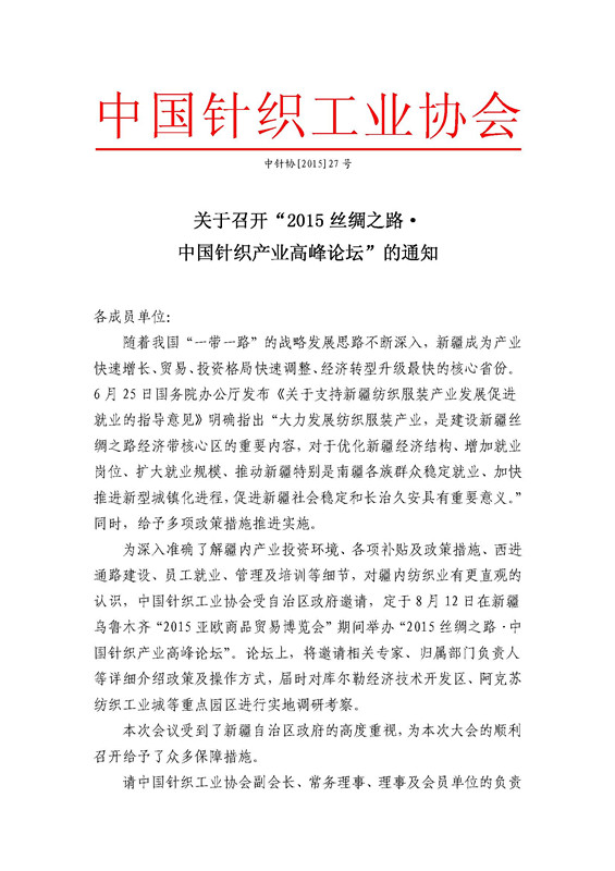 2015絲綢之路中國針織產(chǎn)業(yè)高峰論壇