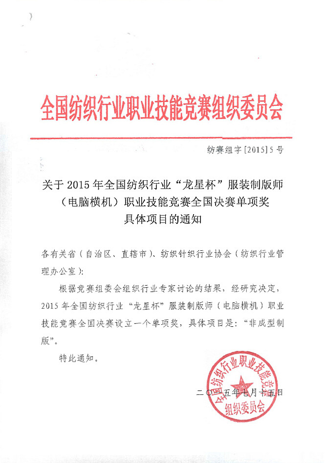 龍星杯服裝制版師決賽單項(xiàng)獎(jiǎng)通知