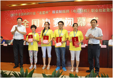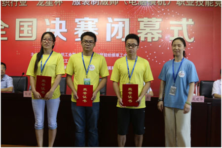 中國紡織工業(yè)聯(lián)合會會長助理、中國針織工業(yè)協(xié)會會長楊世濱,中國紡織工業(yè)聯(lián)合會特邀副會長、江蘇省紡織工業(yè)協(xié)會會長謝明,常熟市副市長、虞山鎮(zhèn)黨委書記朱亞輝,中國針織工業(yè)協(xié)會副會長林光興,中國針織工業(yè)協(xié)會專家技術(shù)委員會主任、本屆大賽總裁判長漆小瑾,本屆大賽技術(shù)總顧問、天津工業(yè)大學(xué)教授宋廣禮,常熟市工會副主席戴建華,常熟市人力資源保障局副局長唐奕,江蘇金龍科技股份有限公司董事長金永良,福州琪利軟件有限公司董事長楊維堅及協(xié)辦單位等有關(guān)領(lǐng)導(dǎo)和嘉賓出席了閉幕式。中國紡織工業(yè)聯(lián)合會人事部副主任、紡織行業(yè)職業(yè)技能鑒定指導(dǎo)中心主任孫曉音主持了頒獎儀式。