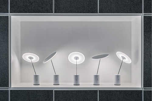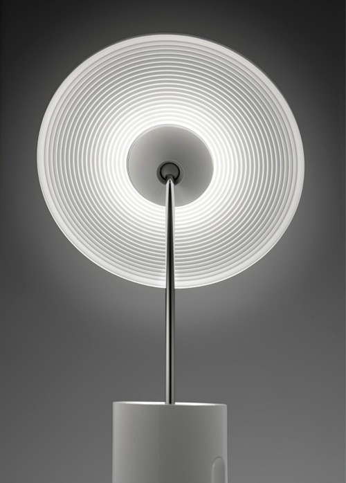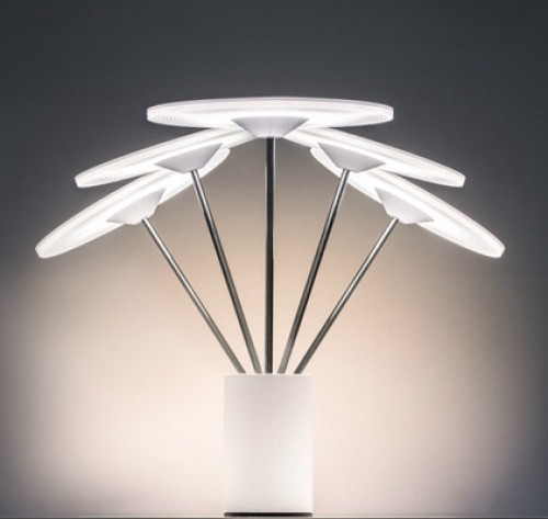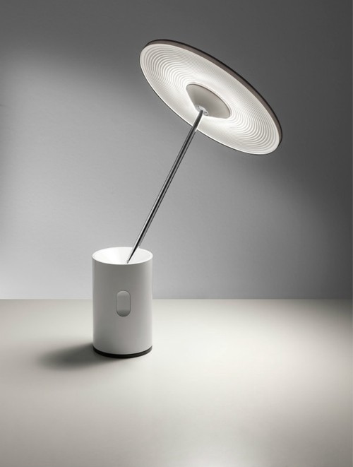 這款燈是設(shè)計(jì)師Justin Marimon和Scott Wilson為燈具品牌Artemide設(shè)計(jì)的,其主要目的是提高LED的利用效率,最大程度地節(jié)約光亮用于需要照亮的地方。頂部的LED燈被嵌到一個(gè)圓盤里面,密集排列,這個(gè)圓盤可以輕松優(yōu)雅地呈現(xiàn)360°旋轉(zhuǎn),且照明范圍很大,被照亮的地方也會(huì)得到充足的光源,底座是一個(gè)圓柱形,可以減小占地面積,適合放在書桌上、床頭上等比較小面積的地方。