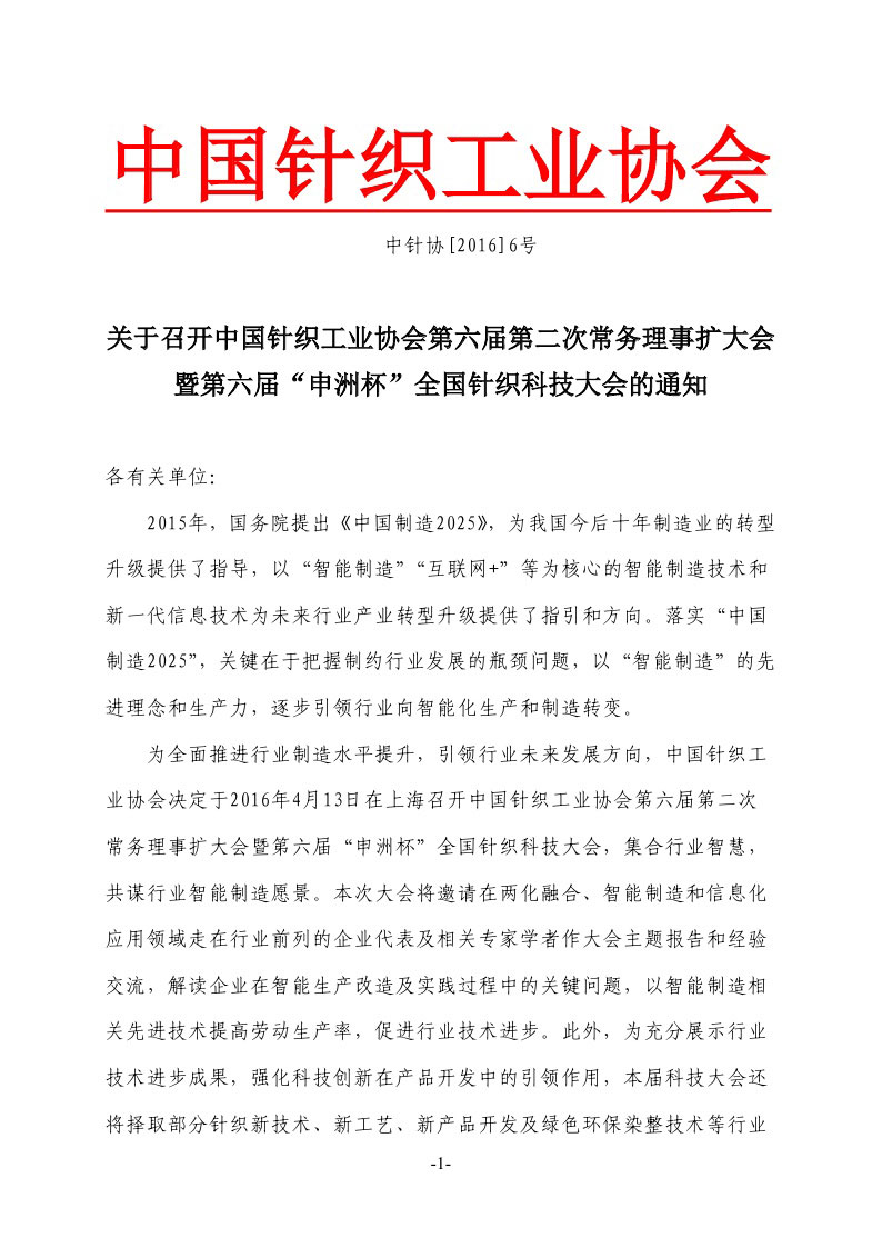 關(guān)于召開(kāi)中國(guó)針織工業(yè)協(xié)會(huì)第八次會(huì)員大會(huì)、第八屆第一次理事會(huì)的通知