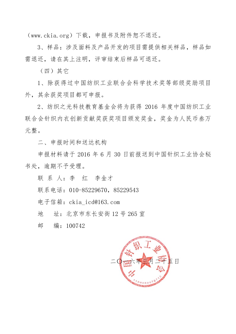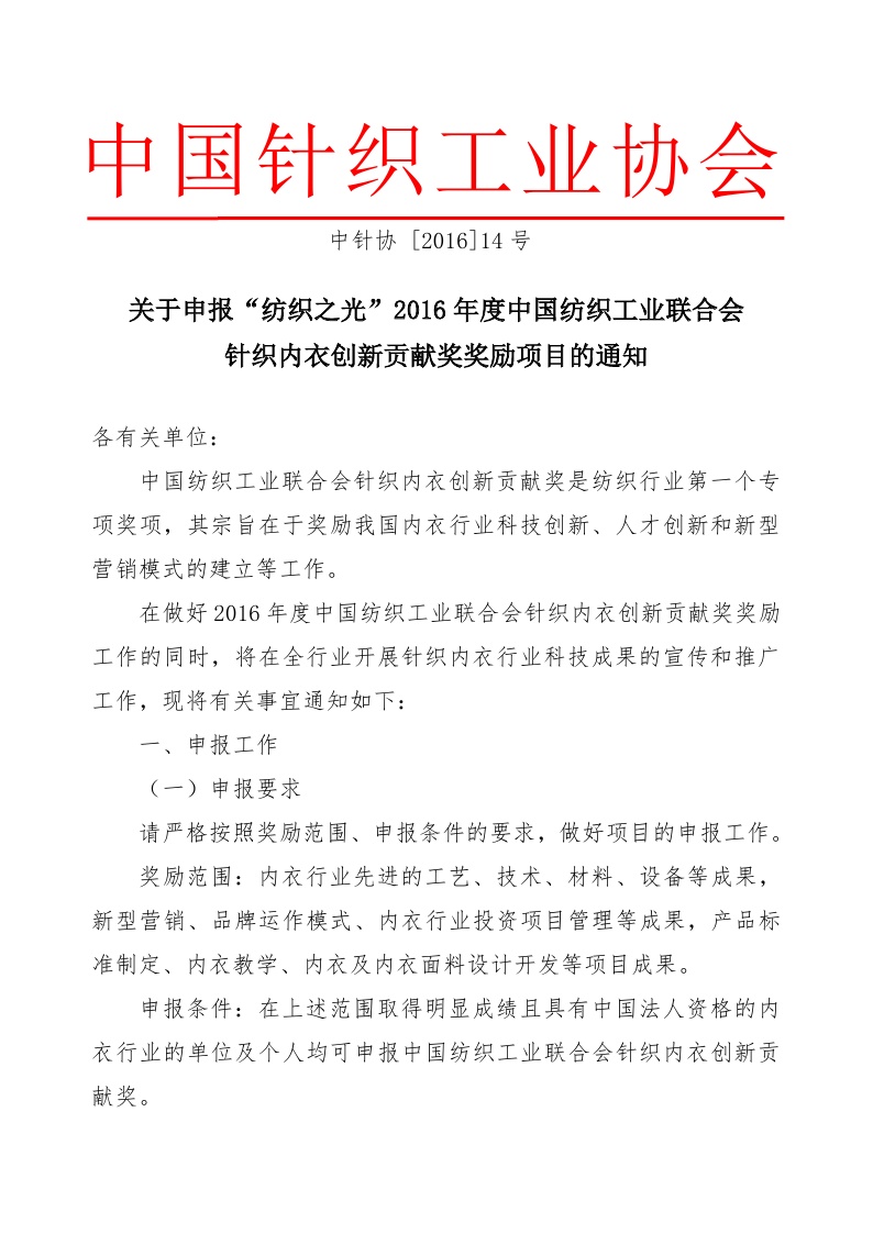 申報2016針織內(nèi)衣創(chuàng)新貢獻獎的通知