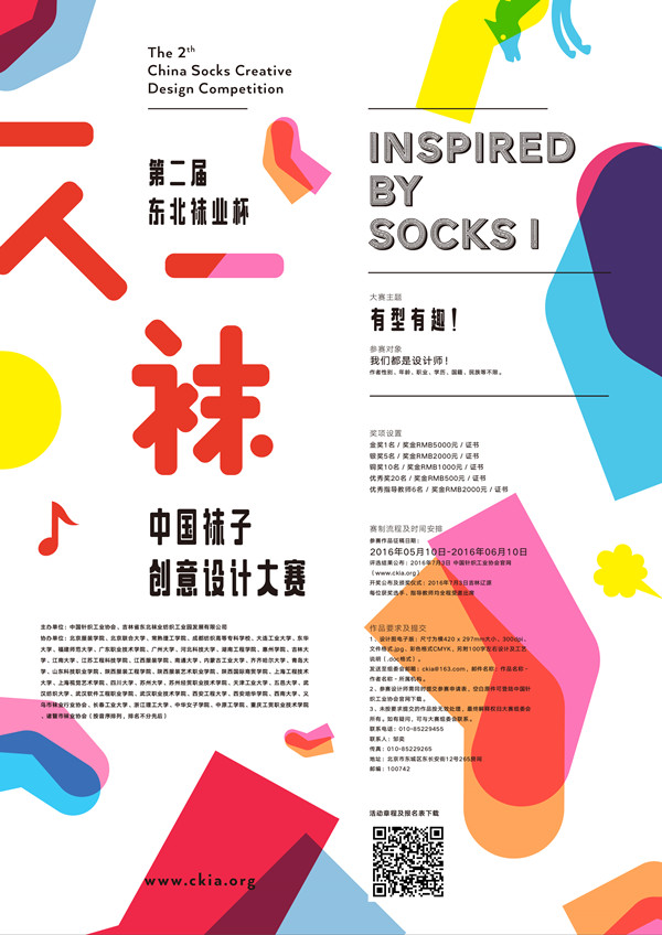 第二屆東北襪業(yè)杯“一人一襪”中國襪子創(chuàng)意設(shè)計(jì)大賽是由中國針織工業(yè)協(xié)會(huì)、吉林省東北襪業(yè)紡織工業(yè)園發(fā)展有限公司主辦,多家高等院校、地方行業(yè)協(xié)會(huì)共同協(xié)辦的大型活動(dòng)。本屆大賽為推動(dòng)行業(yè)的協(xié)同創(chuàng)新發(fā)展、產(chǎn)業(yè)升級(jí),以專業(yè)性、流行性、應(yīng)用性、創(chuàng)新性為基礎(chǔ),以公開、公平、公正的原則為核心,特面向國際及國內(nèi)青年服裝設(shè)計(jì)師、服裝院校師生和業(yè)余服裝設(shè)計(jì)愛好者征稿,熱忱歡迎大家踴躍參加。