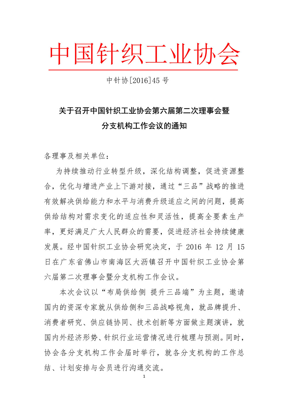 關(guān)于召開中國針織工業(yè)協(xié)會第八次會員大會、第八屆第一次理事會的通知