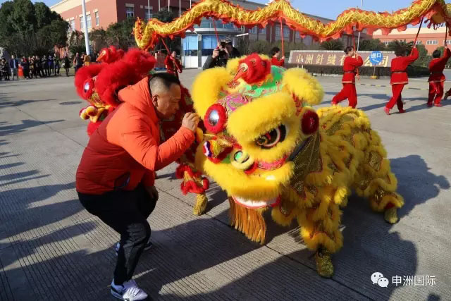 1月24日晨 舞龍舞獅以及申洲集團馬建榮董事長的點睛之筆都為今年春運討了個好彩頭!