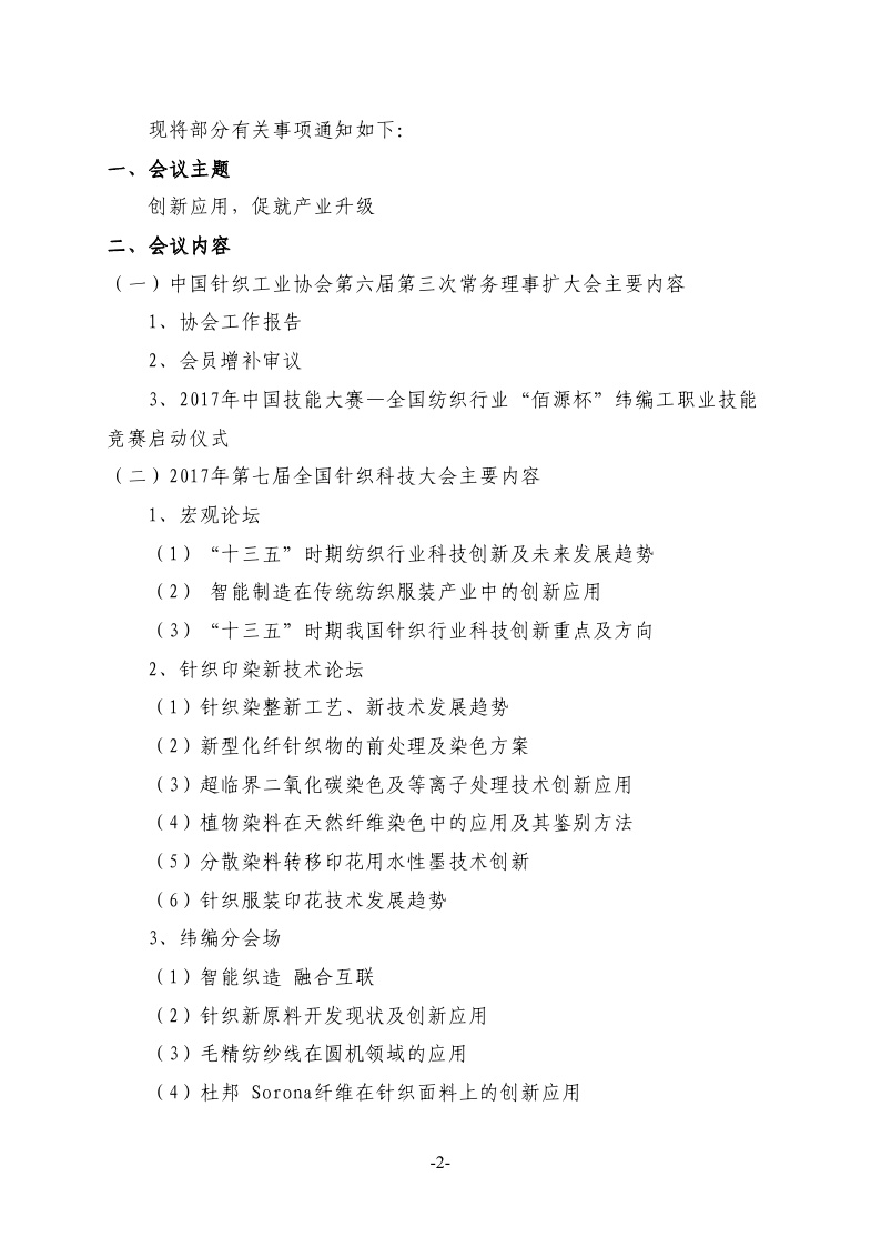 2017針織科技大會暨六屆三次常務理事擴大會的通知