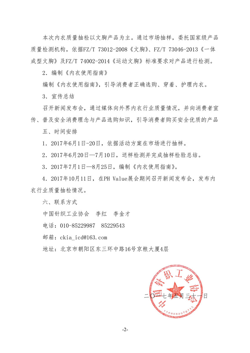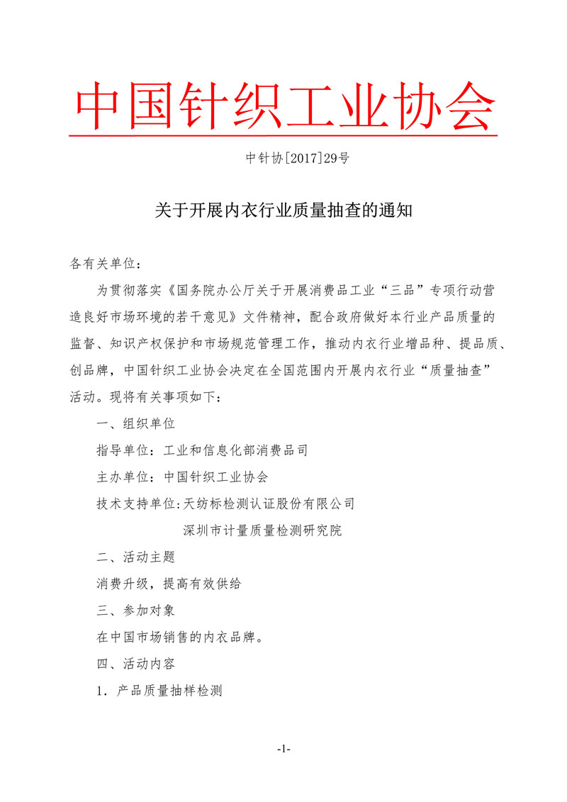 關(guān)于開展內(nèi)衣質(zhì)量抽查的通知