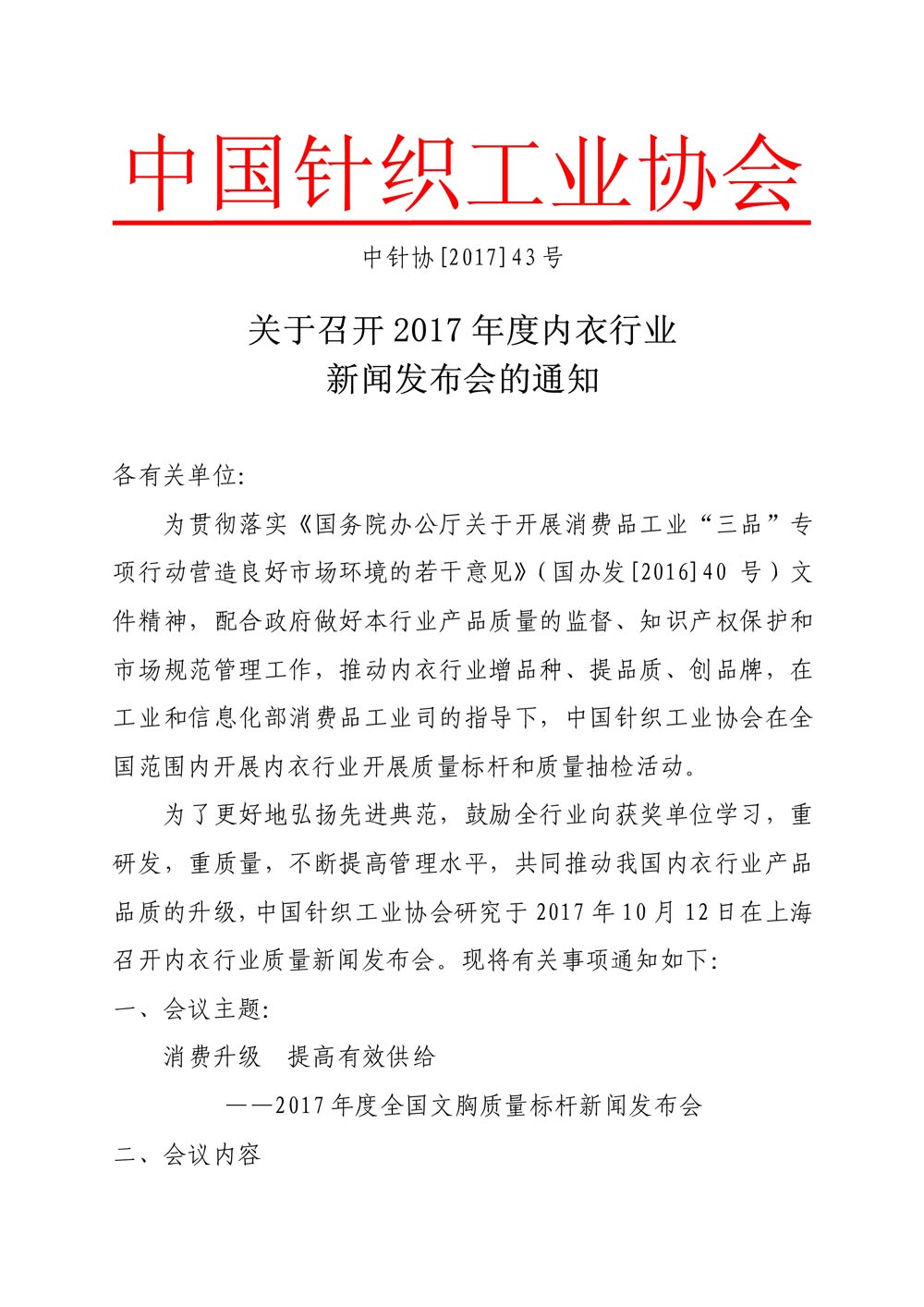 2017年度內衣行業(yè)新聞發(fā)布會通知