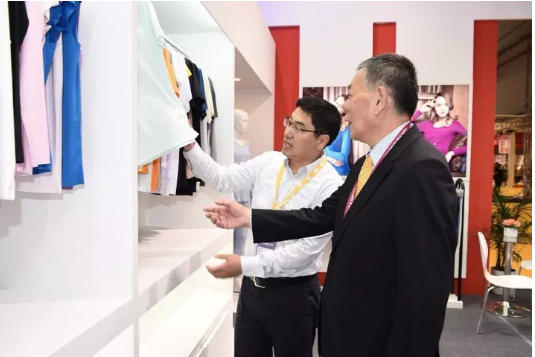 在江蘇金龍科技股份有限公司的展位前,楊紀(jì)朝一行參觀了金龍在針織花型設(shè)計方面的成果后,對企業(yè)在設(shè)計領(lǐng)域不斷探索的做法表示稱贊;在電商展區(qū),阿里巴巴帶領(lǐng)孟加拉、以色列及泰國展商前來參展,在把海外優(yōu)質(zhì)的一手貨源推廣到中國的同時,也讓海外展商能更進一步了解接觸中國服飾市場狀況,有針對性地開拓銷售。對于電商平臺帶領(lǐng)境外企業(yè)來到線下與產(chǎn)業(yè)互動這種做法,楊紀(jì)朝給予了鼓勵。