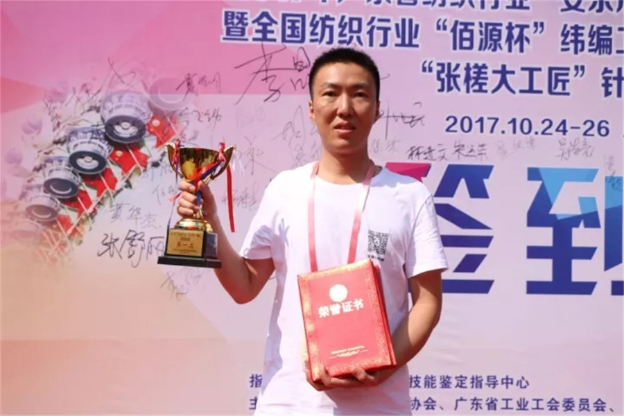 來自佛山東成立億紡織有限公司的梁澤江,在此次張槎針織技能競賽中,以102.72分的總成績一舉奪得冠軍,成為“張槎大工匠”!