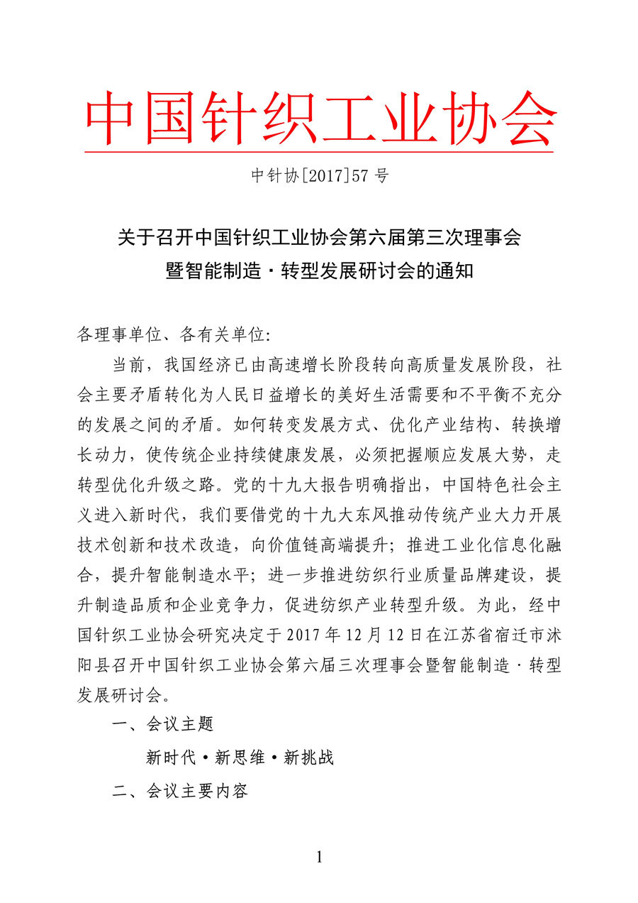 關(guān)于召開中國針織工業(yè)協(xié)會第八次會員大會、第八屆第一次理事會的通知