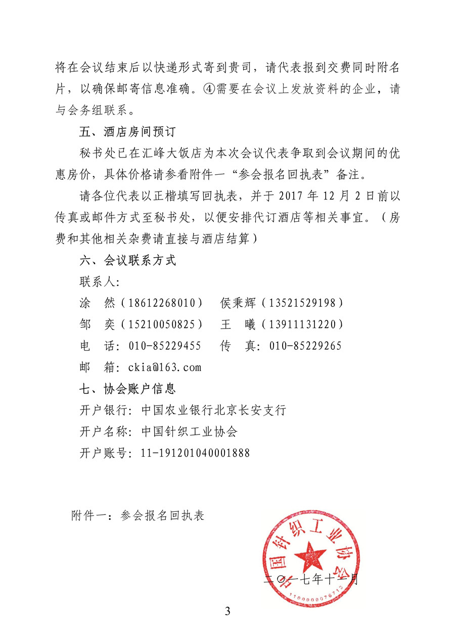 附件一:中國針織工業(yè)協(xié)會第六屆第三次理事會參會報名回執(zhí)表