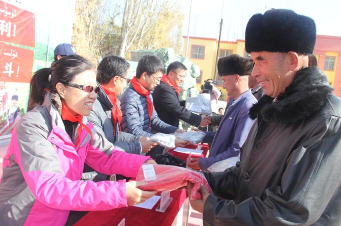 葛亮代表吐曼塔勒鄉(xiāng)和庫木庫薩爾鄉(xiāng)的受捐贈群眾表達(dá)了謝意,并表示捐贈活動將帶動更多人了解新疆并參與到愛心事業(yè)中。