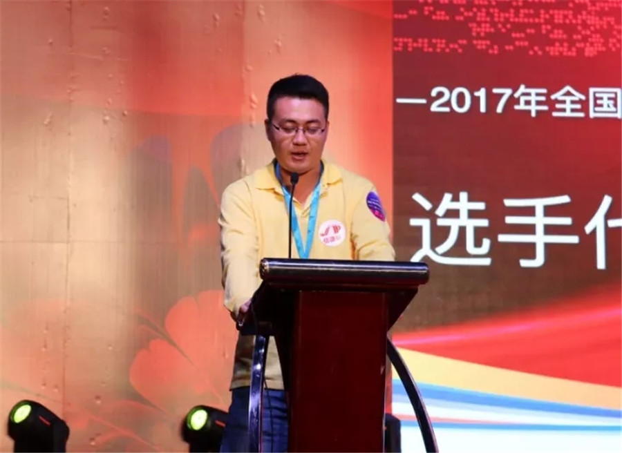 楊帆作為選手代表宣讀倡議書。他表示:“通過本次大賽的比拼和鍛煉,我不僅學(xué)到了新的操作法,在技術(shù)上有了很大提升,而且在競賽過程中,我深刻感受到‘一絲不茍、精益求精、不斷挑戰(zhàn)自我’的競賽精神。”他代表全體參賽選手向全國針織行業(yè)發(fā)出倡議,希望與全國紡織行業(yè)的兄弟姐妹一道,將競賽精神融入到日常工作和生活中,不斷完善自我,提升技術(shù)水平。