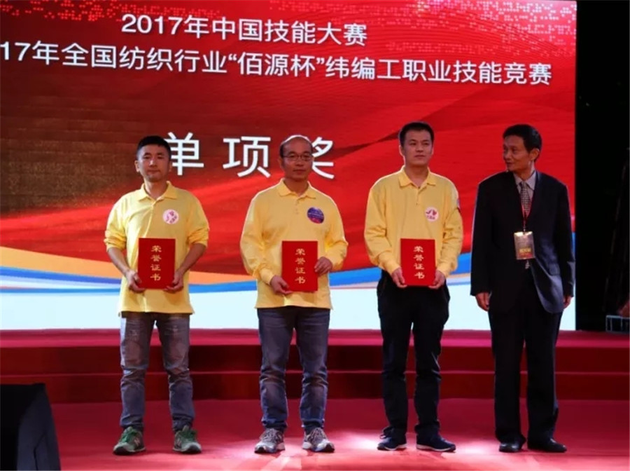 11月21日,2017年中國技能大賽——全國紡織行業(yè)“佰源杯”緯編工職業(yè)技能競賽頒獎典禮在廣東佛山文華公園召開。