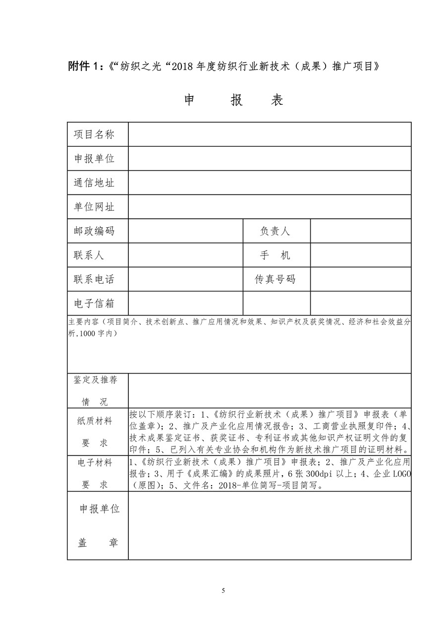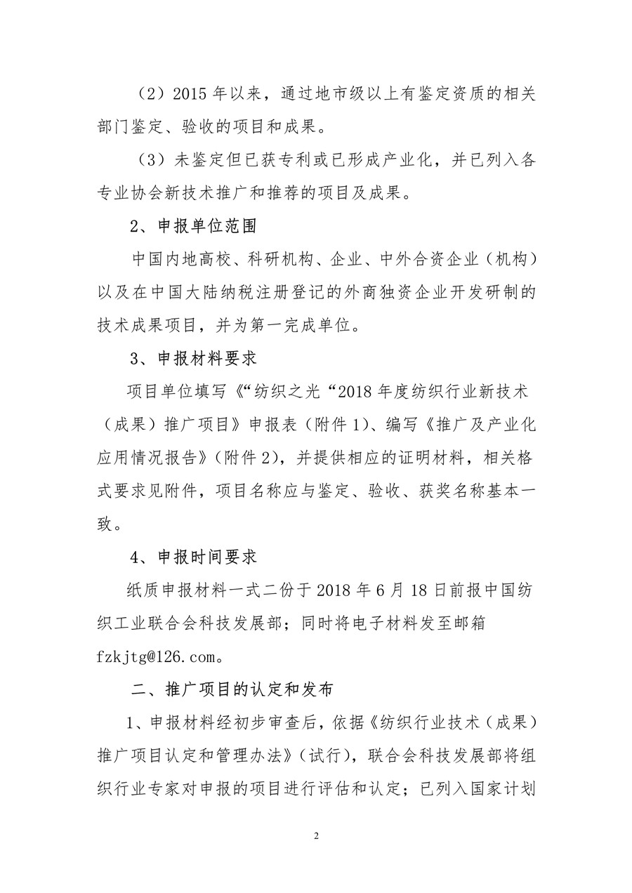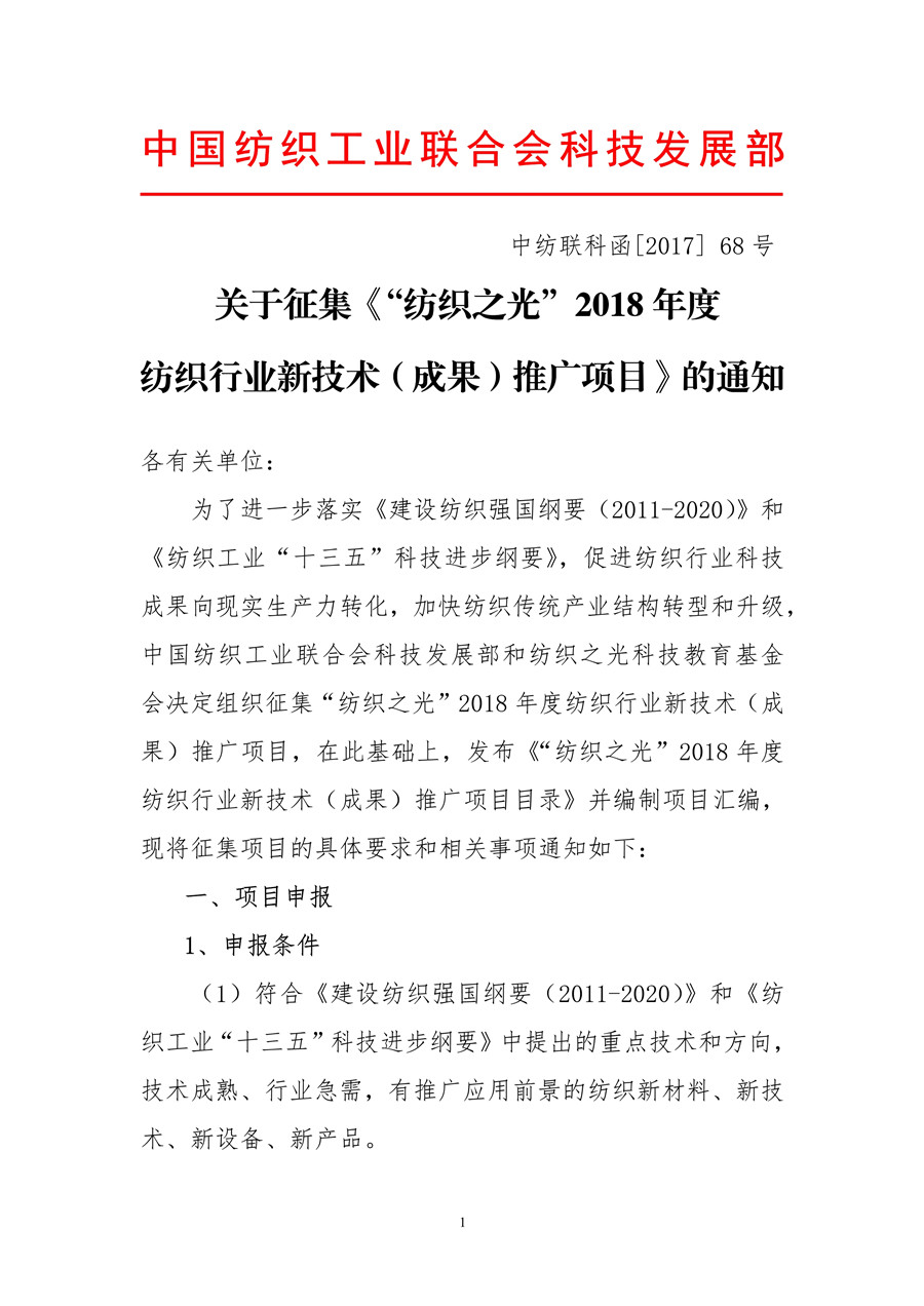 關(guān)于征集《“紡織之光”2018年度紡織行業(yè)新技術(shù)(成果)推廣項(xiàng)目》通知