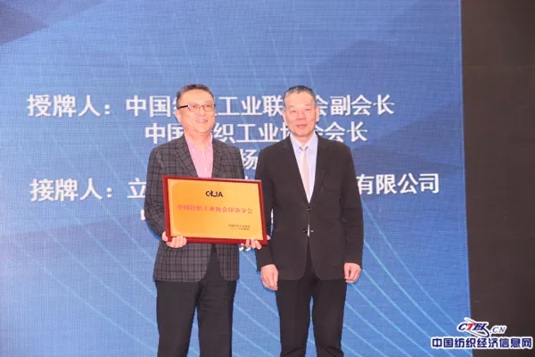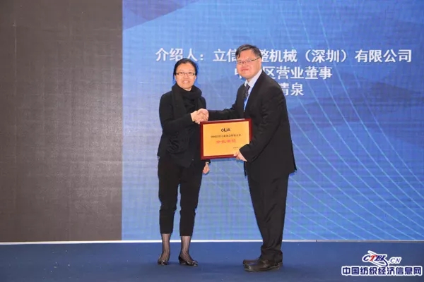 中國(guó)針織工業(yè)協(xié)會(huì)副會(huì)長(zhǎng)瞿靜為中國(guó)針織工業(yè)協(xié)會(huì)印染分會(huì)會(huì)長(zhǎng)單位授牌
