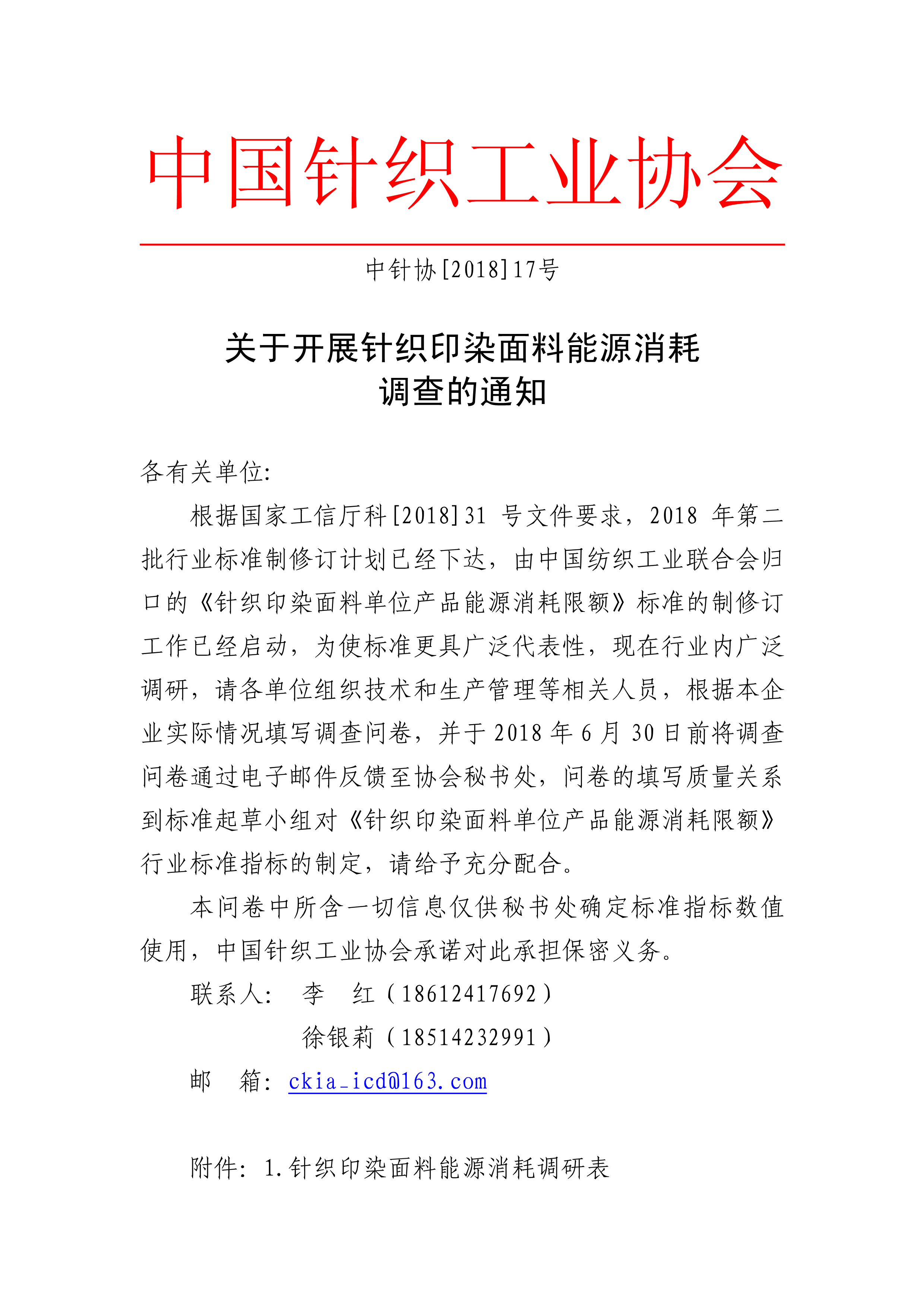 關(guān)于開(kāi)展針織印染面料能源消耗調(diào)查的通知