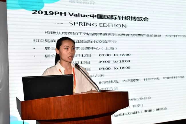中國國際貿(mào)易促進(jìn)委員會紡織行業(yè)分會高級項目經(jīng)理張嘉在發(fā)言中談到,隨著80/90/00后新一代消費(fèi)群體逐步成熟,個性化、時尚化、高品質(zhì)已成為新興購買力的首要需求。內(nèi)銷市場成為國內(nèi)針織行業(yè)企業(yè)關(guān)注的重點(diǎn)和方向,針織行業(yè)規(guī)上企業(yè)內(nèi)銷占比已由2012的66.87%提高到2017年的74.30%。針織服裝以其獨(dú)特工藝和設(shè)計元素的時代變遷,應(yīng)用范圍越來越廣,未來潛在的消費(fèi)市場巨大。會上,她還介紹了2019 PH Value中國國際針織(春夏)博覽會的舉辦情況,并就下屆展會的亮點(diǎn)進(jìn)行了重點(diǎn)說明。