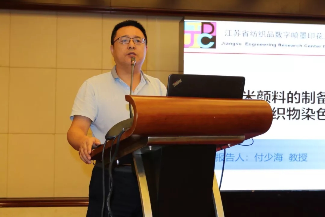 除了靛藍染料以外,涂料也是牛仔染色常用的染料,它不僅能實現(xiàn)某些特殊風格,比如淺色的彩色牛仔和一些特殊手感的產(chǎn)品等,而且更加環(huán)保,特別是在淺色品種染色過程中幾乎零排污,也是紡織印染行業(yè)未來針對環(huán)保壓力下一種較好的染料選擇。付少海以“納米顏料的制備及其對棉織物染色行為研究”為主題,重點介紹了接枝聚合法PSSS/CB復合粒子的制備及性能、巰基-烯點擊法自分散納米炭黑的制備及性能、反應性自分散納米炭黑的制備及性能、有機顏料表面修飾方法及性能,以及納米顏料對棉織物染色和陽離子型納米顏料對棉織物染色行為研究成果。