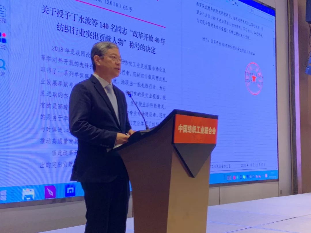 隨后,夏令敏宣布授予丁水波等140名同志“改革開放40年紡織行業(yè)突出貢獻人物”稱號(名單附后),并為45位代表頒發(fā)獎牌和證書。