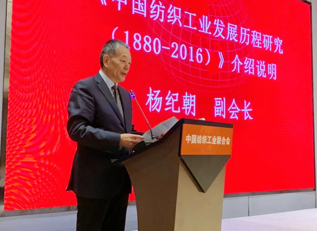 在本次大會上,《中國紡織工業(yè)發(fā)展歷程研究(1880~2016)》新書的首發(fā)聚焦了與會來賓的目光。楊紀朝介紹道:這本書在十屆全國政協(xié)副主席陳錦華的熱情倡導(dǎo)下,在中紡聯(lián)的組織下,由紡織系統(tǒng)幾位資深老專家執(zhí)筆撰寫、中國紡織出版社負責(zé)出版發(fā)行,歷時5年問世。該書列入國家出版基金項目,同時獲批“十三五”國家重點出版工程。