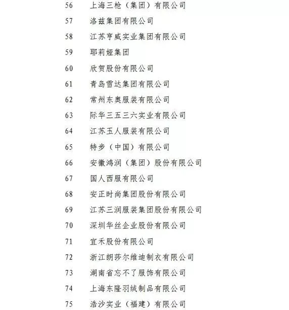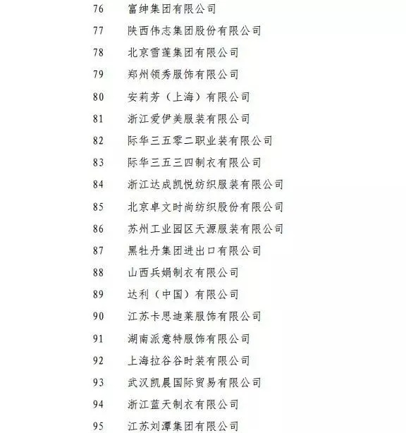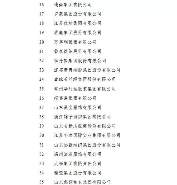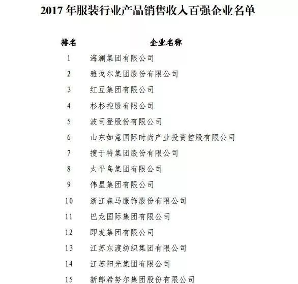 2017年服裝行業(yè)產(chǎn)品銷售收入百強企業(yè)名單改革開放40年紡織行業(yè)突出貢獻人物名單