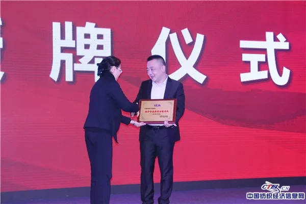 中國針織工業(yè)協(xié)會副會長瞿靜為浙江大唐襪業(yè)城有限公司總經(jīng)理傅國柱授牌——中國針織工業(yè)協(xié)會襪子專業(yè)委員會秘書處