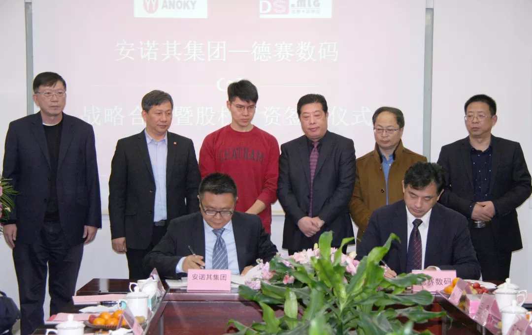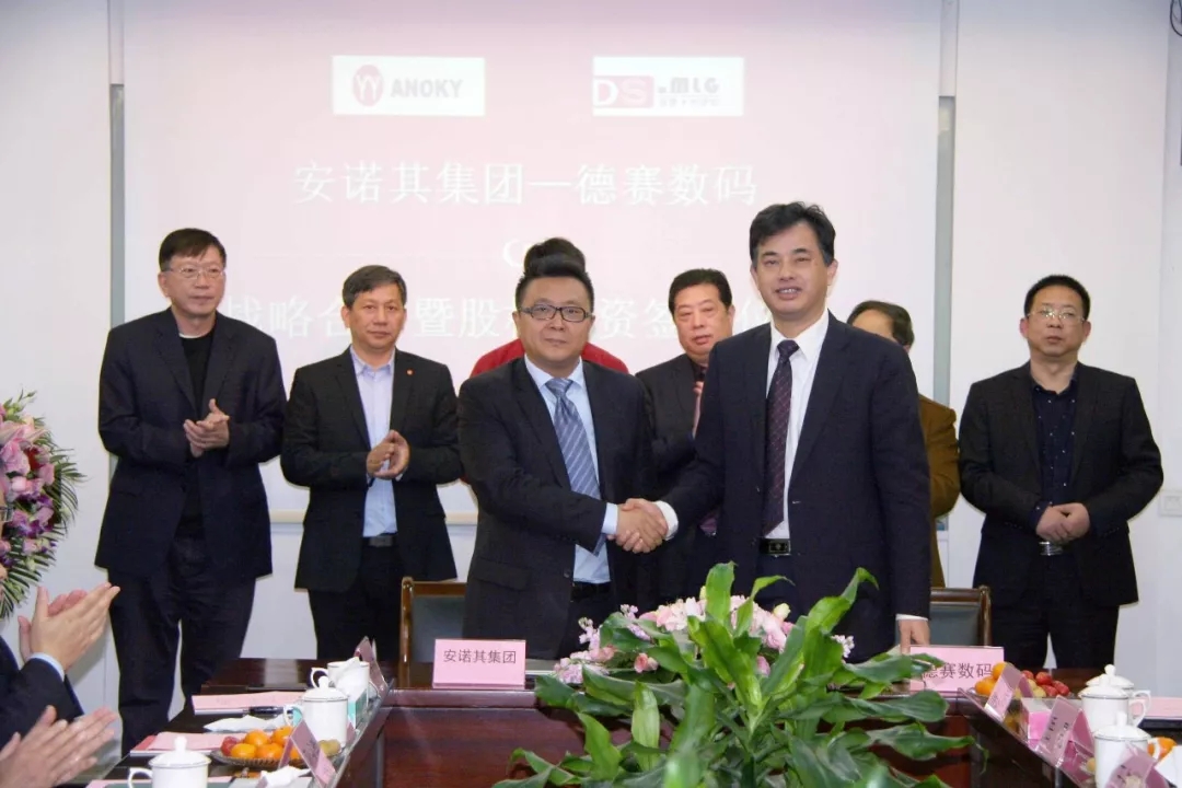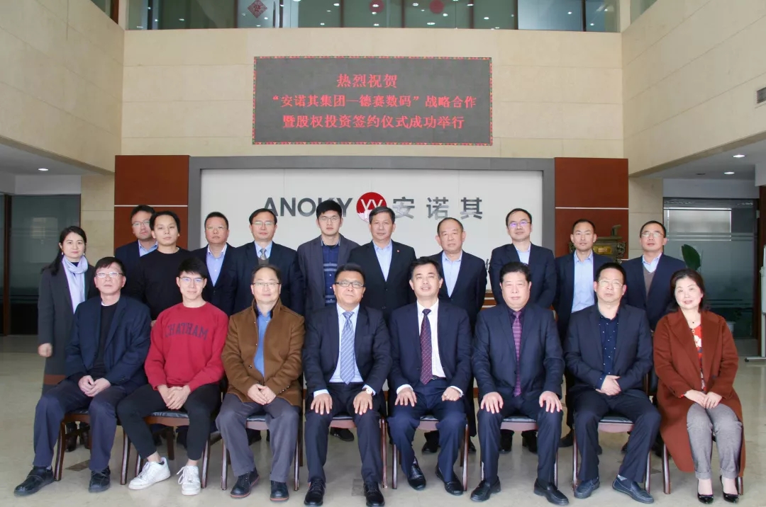 安諾其集團(tuán)董事長(zhǎng)紀(jì)立軍、德賽數(shù)碼董事長(zhǎng)岳雙君、德賽數(shù)碼所在地江蘇宜興政府部門領(lǐng)導(dǎo)沈進(jìn)良、上?萍紕(chuàng)業(yè)投資(集團(tuán))股份有限公司投資總監(jiān)張子云、蘇州銳發(fā)數(shù)碼打印技術(shù)有限公司董事長(zhǎng)謝永林以及安諾其集團(tuán)與德賽數(shù)碼雙方管理團(tuán)隊(duì)三十余人共同參會(huì)見(jiàn)證本次簽約儀式。