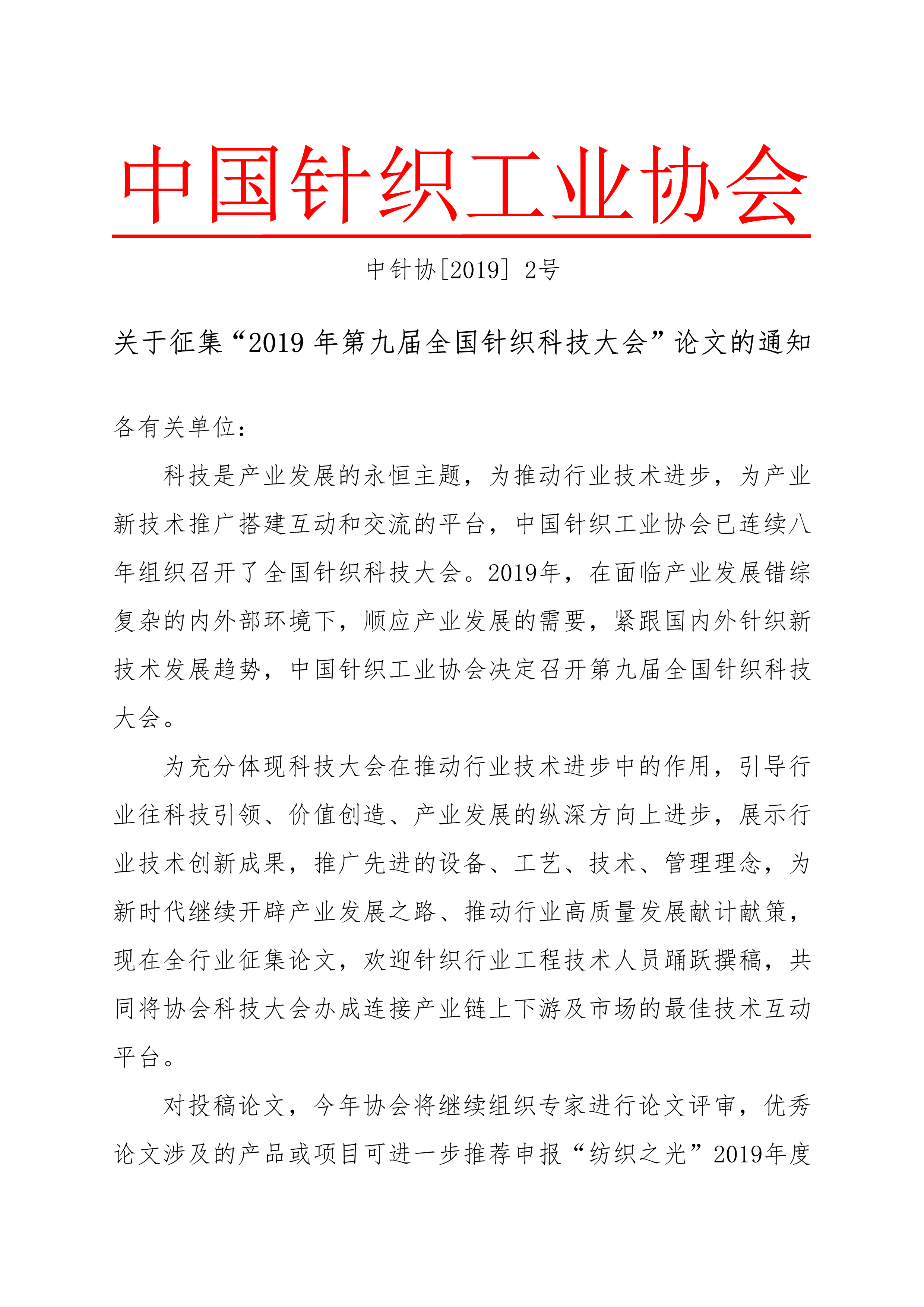 關(guān)于召開中國針織工業(yè)協(xié)會第八次會員大會、第八屆第一次理事會的通知