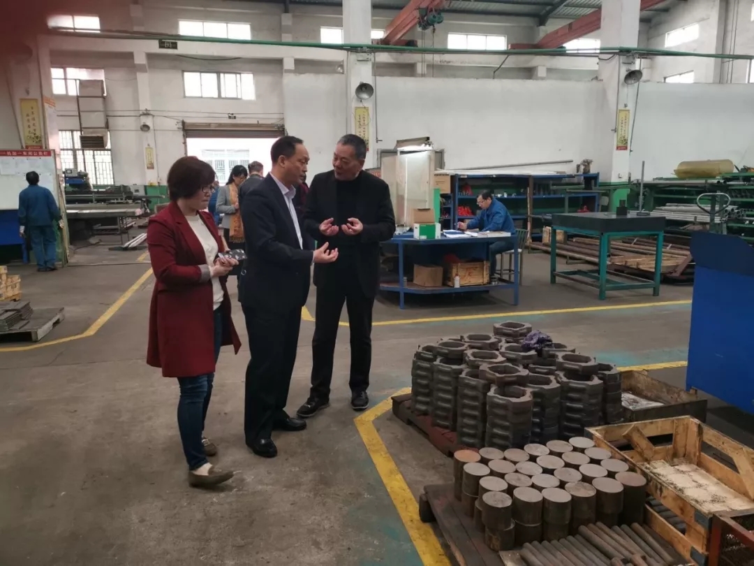 隨后,楊紀(jì)朝一行參觀了佶龍機(jī)械的生產(chǎn)車間。仔細(xì)查看了佶龍雙針床短絨經(jīng)編機(jī)的試機(jī)情況后,楊紀(jì)朝仔細(xì)詢問了設(shè)備配件國(guó)產(chǎn)化的情況,鼓勵(lì)佶龍機(jī)械多嘗試使用國(guó)產(chǎn)配件代替進(jìn)口配件。