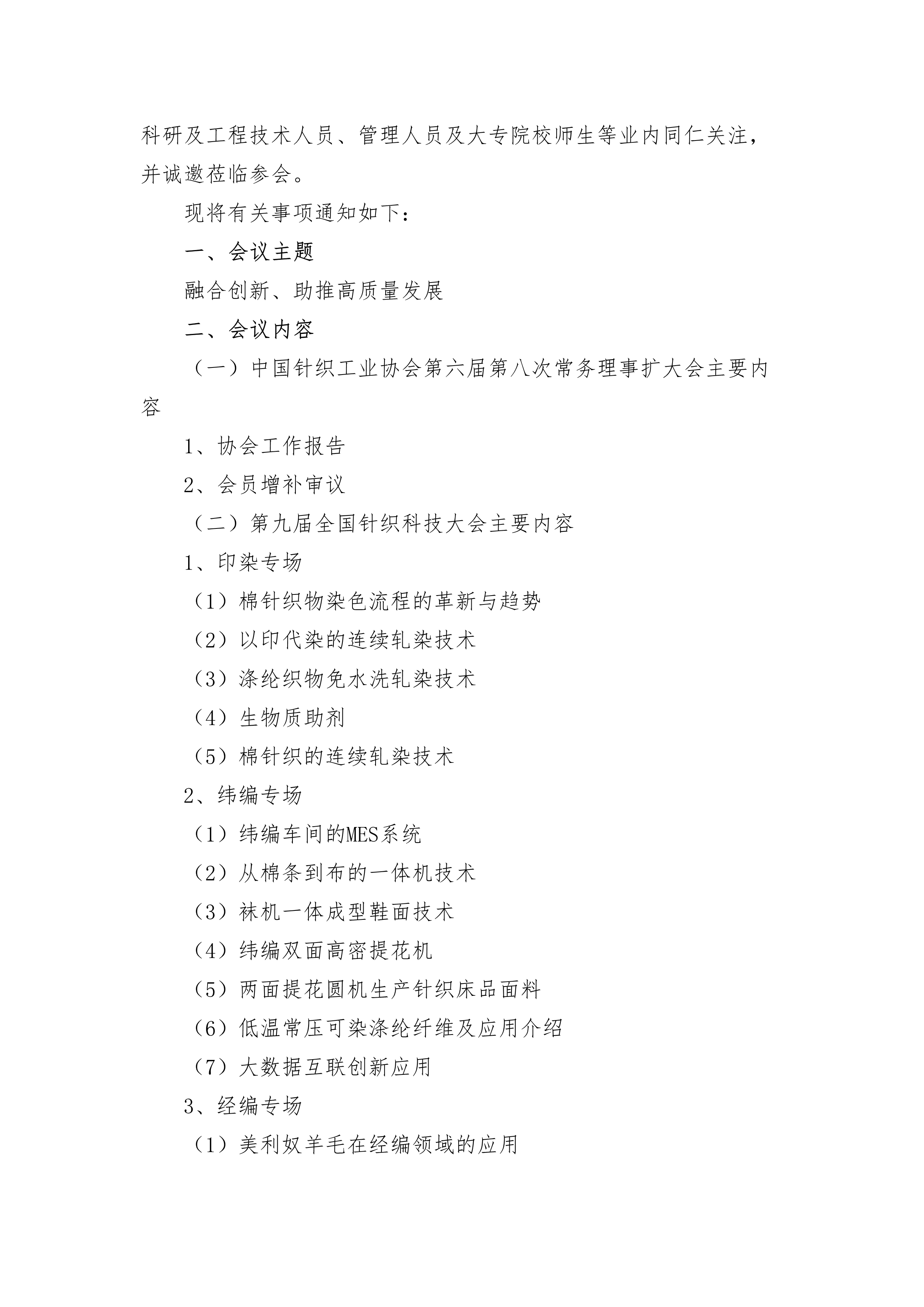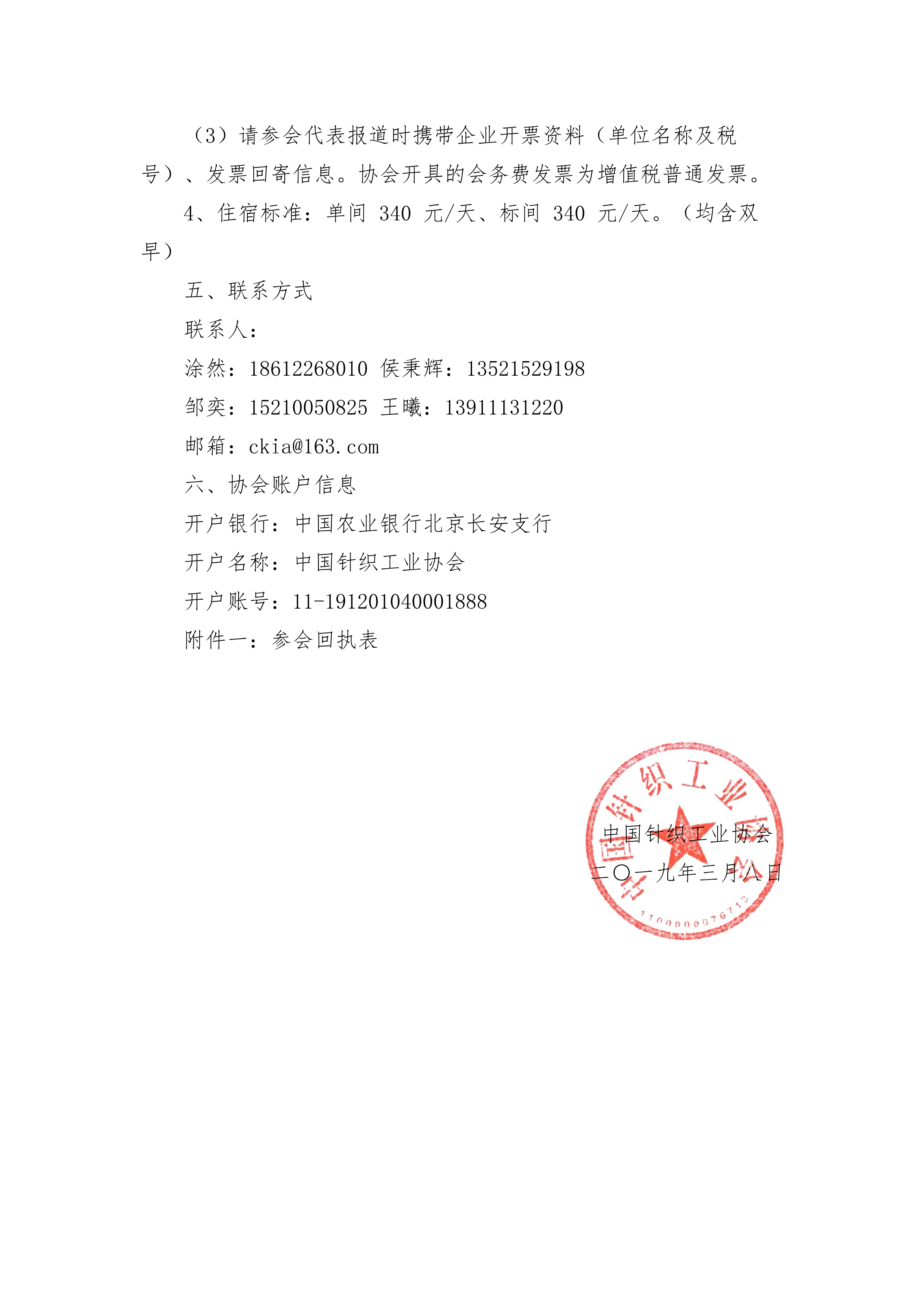 關(guān)于召開中國針織工業(yè)協(xié)會(huì)第七屆第九次常務(wù)理事擴(kuò)大會(huì)的通知
