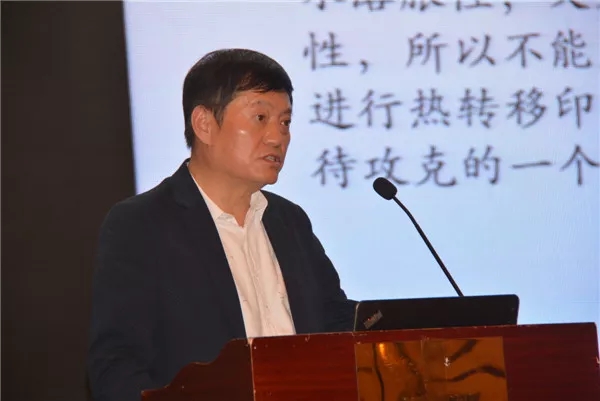 北京三麗科技有限公司總經(jīng)理竇國平作《棉纖維織物熱轉(zhuǎn)移印花工藝技術(shù)》報告。
