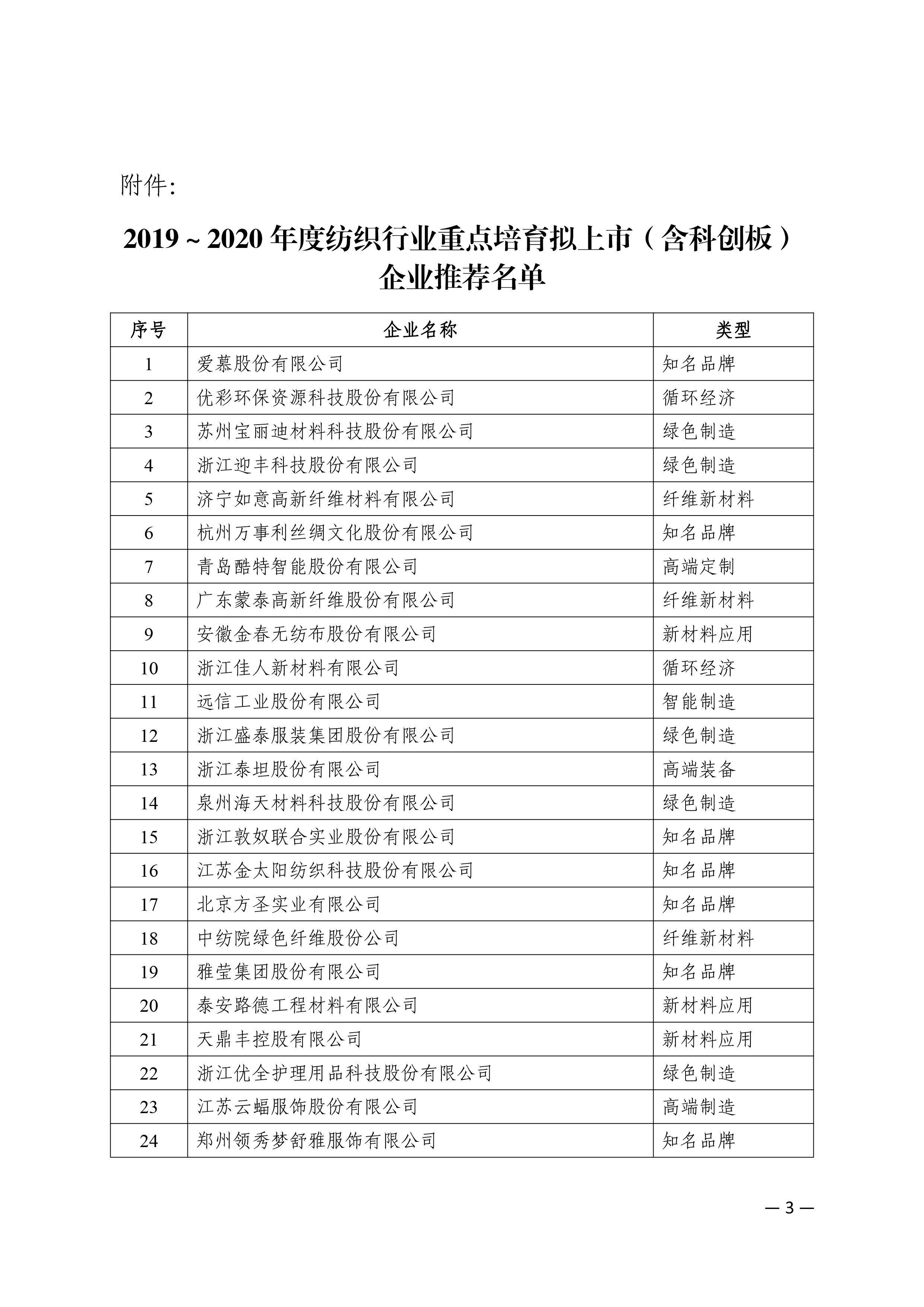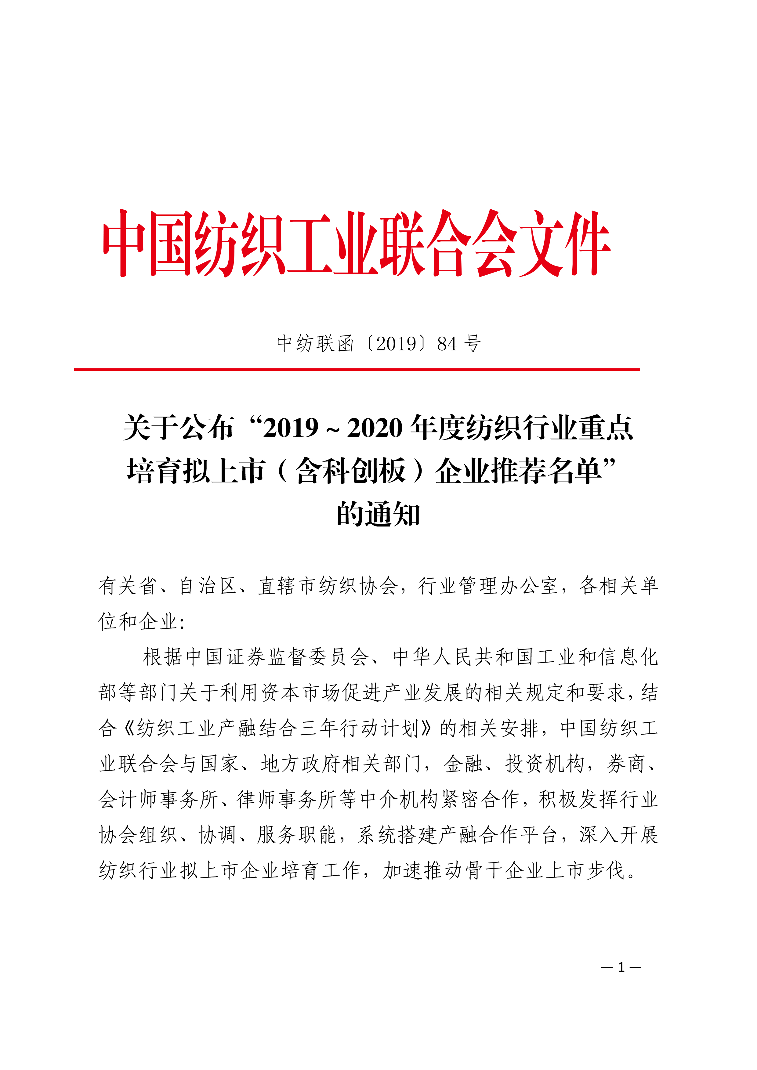 關(guān)于公布2019-2020年度紡織行業(yè)重點(diǎn)擬上市(含科創(chuàng)板)企業(yè)推薦名單的通知