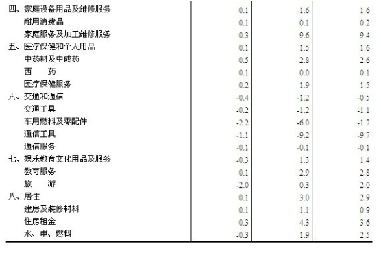 交通和通信價格同比下降1.2%。其中,通信工具價格下降9.2%,車用燃料及零配件價格下降6.0%,交通工具價格下降1.2%,車輛使用及維修價格上漲4.7%。