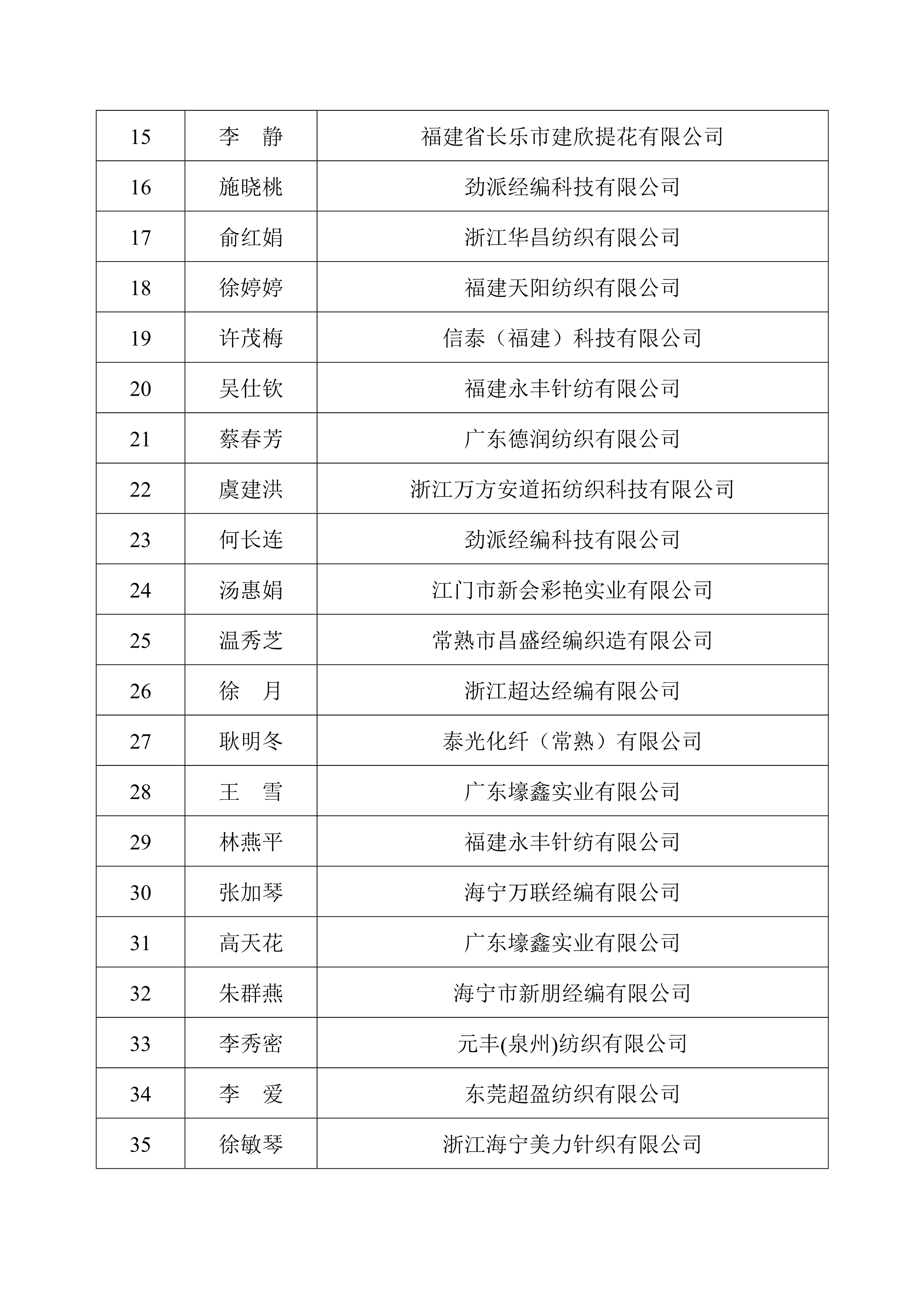 孫曉音主任指出希望獲得榮譽(yù)稱號(hào)的同志以此榮譽(yù)為新起點(diǎn),發(fā)揚(yáng)工匠精神,發(fā)揮模范帶頭作用,謙虛謹(jǐn)慎,再接再厲,不斷學(xué)習(xí)新知識(shí)、掌握新技能、創(chuàng)造新業(yè)績、做出新貢獻(xiàn),為紡織行業(yè)高技能人才隊(duì)伍不斷發(fā)展壯大,為促進(jìn)紡織產(chǎn)業(yè)升級(jí),提高企業(yè)自主創(chuàng)新能力,建設(shè)紡織強(qiáng)國,提供強(qiáng)有力的人才支持。