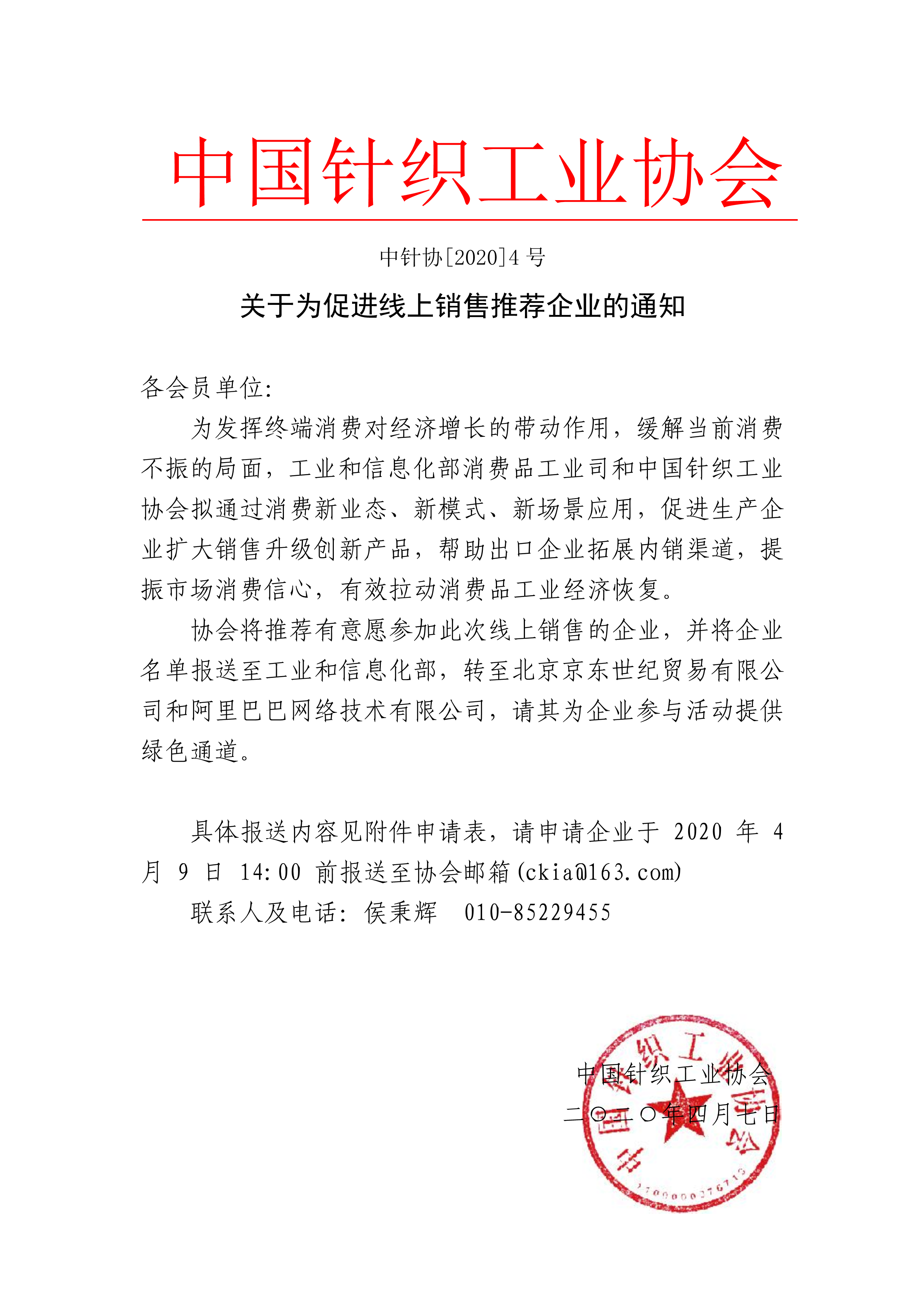 關(guān)于為促進線上銷售推薦企業(yè)的通知