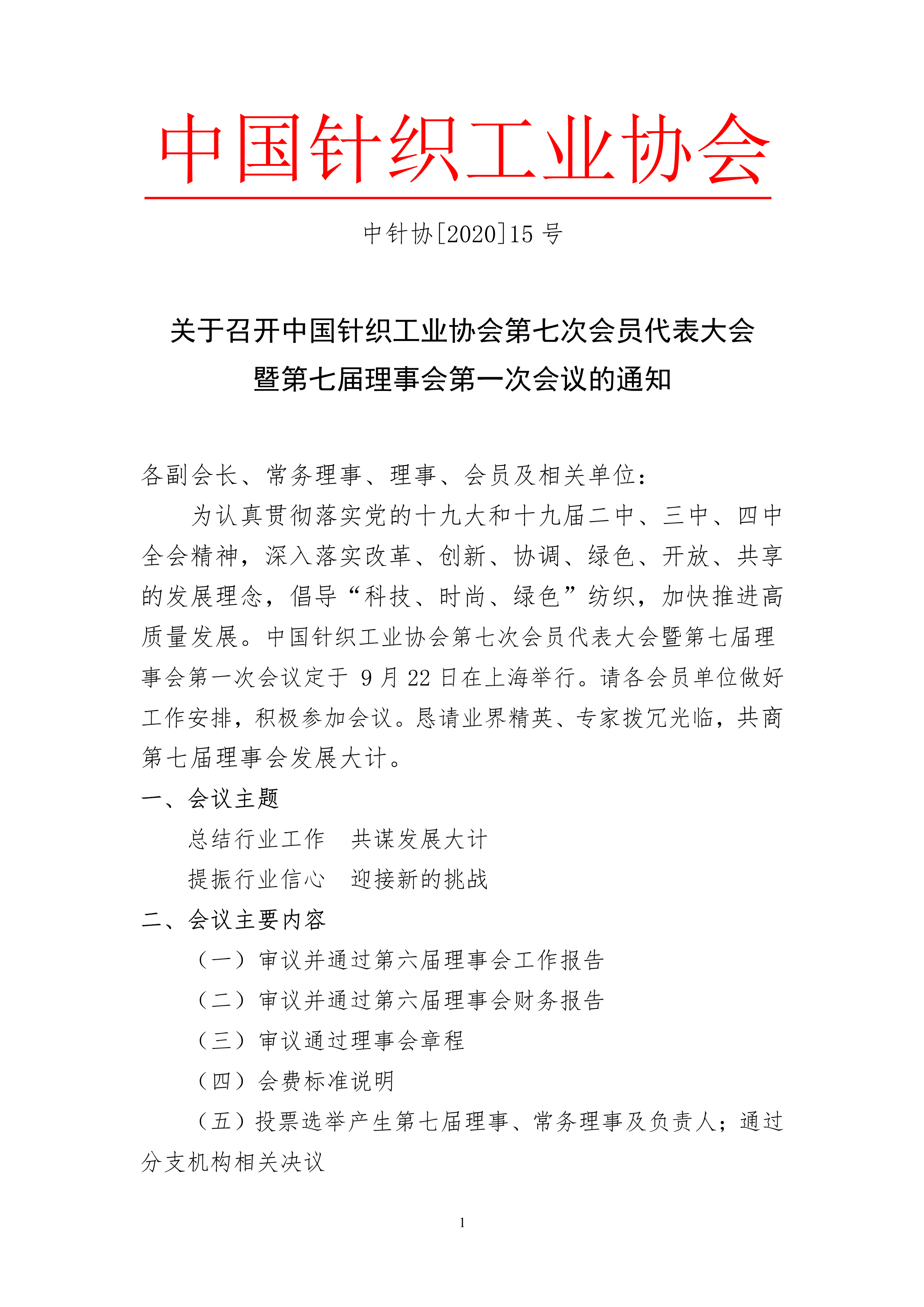 關(guān)于召開(kāi)中國(guó)針織工業(yè)協(xié)會(huì)第八次會(huì)員大會(huì)、第八屆第一次理事會(huì)的通知