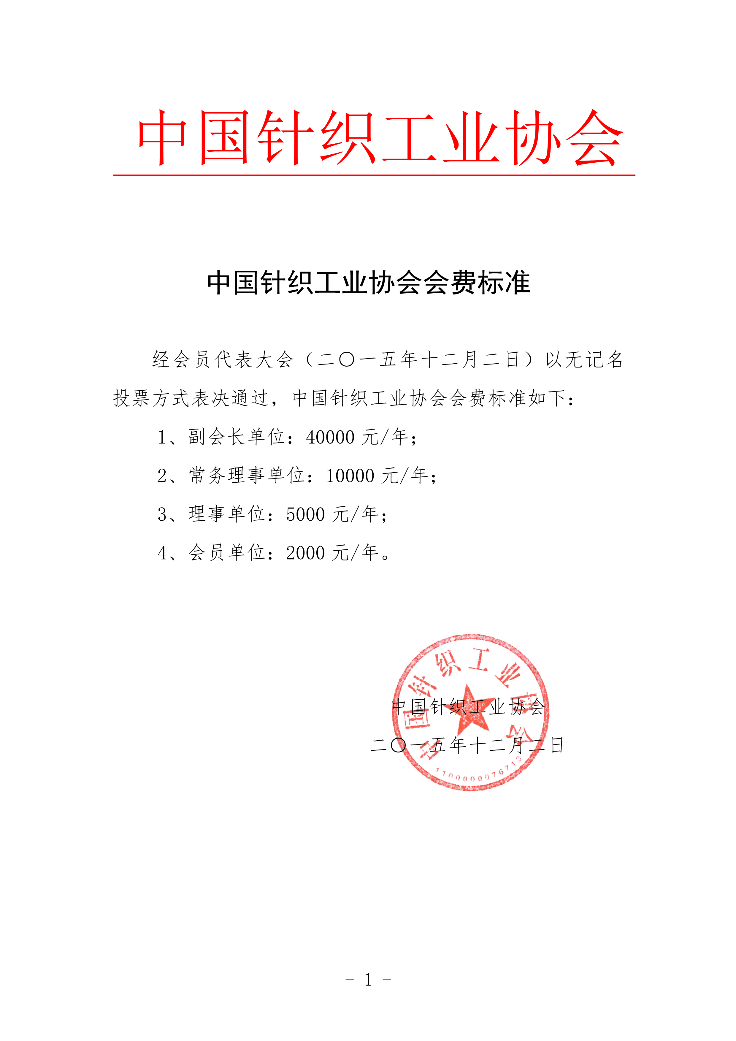 中國針織工業(yè)協(xié)會會費標(biāo)準(zhǔn)