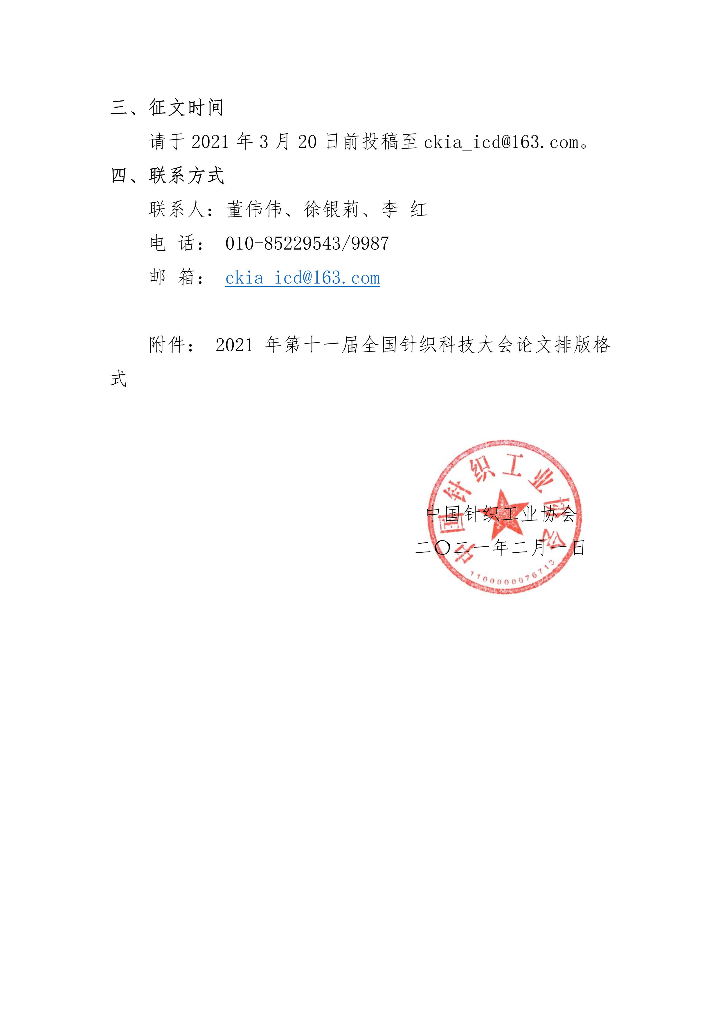 關(guān)于征集2021年“全國針織科技大會(huì)”論文的通知