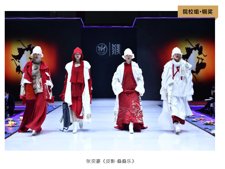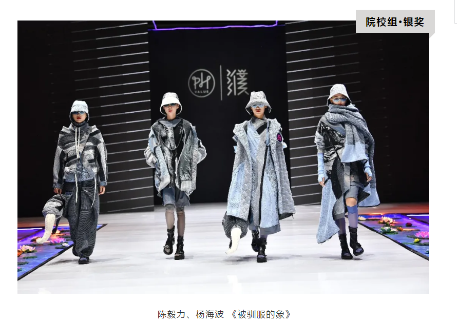 經過激烈比拼,最終,來自北京服裝學院的宋蘇暉憑借作品《無何有》斬獲院校組金獎;來自江西服裝學院的陳毅力、楊海波憑借作品《被馴服的象》獲得院校組銀獎;來自南昌理工學院的張奕豪憑借作品《皮影•疊疊樂》獲得院校組銅獎。