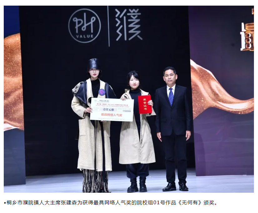 本屆大賽的兩位金獎獲得者參賽經驗都很豐富,但還是在比賽前感到十分緊張。院校組金獎獲得者宋蘇暉表示,“濮院杯“在行業(yè)內很有影響力,但凡有設計夢想的年輕人都想來試試看。