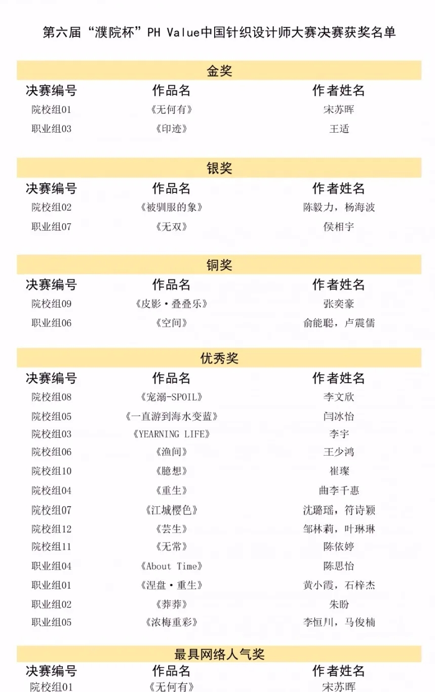 此外,今年大賽組委會還特別設立了最具網(wǎng)絡人氣獎、針織工藝運用獎、最佳紗線運用獎、最佳概念設計獎、最具未來潛力獎、針織男裝風尚獎、針織女裝風尚獎等多個單項獎。