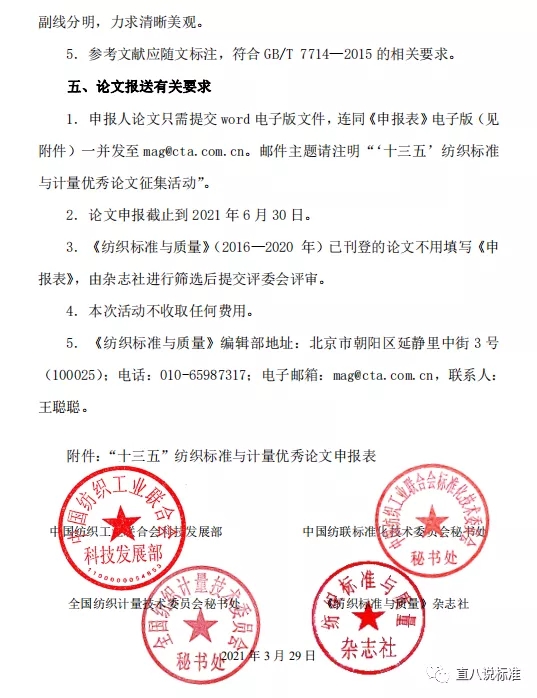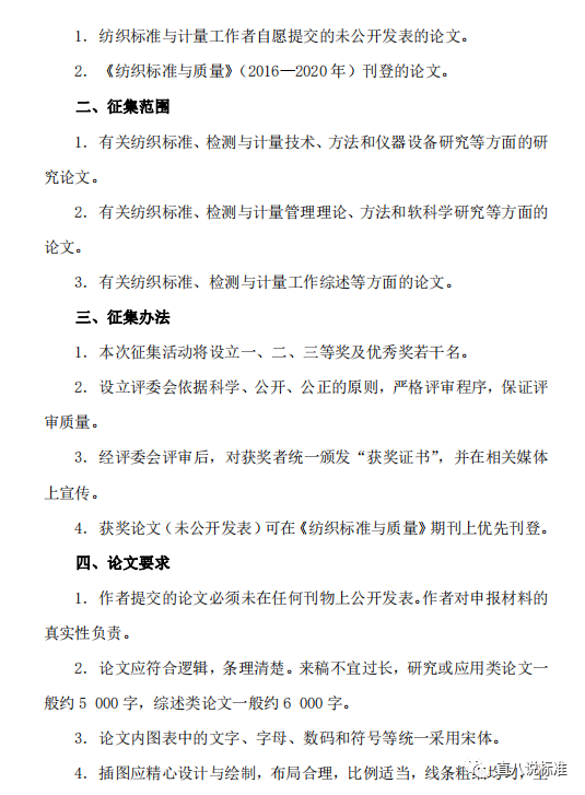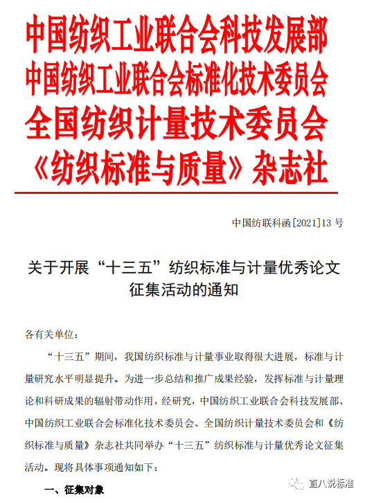 征集“十三五”紡織標(biāo)準(zhǔn)與計(jì)量?jī)?yōu)秀論文通知