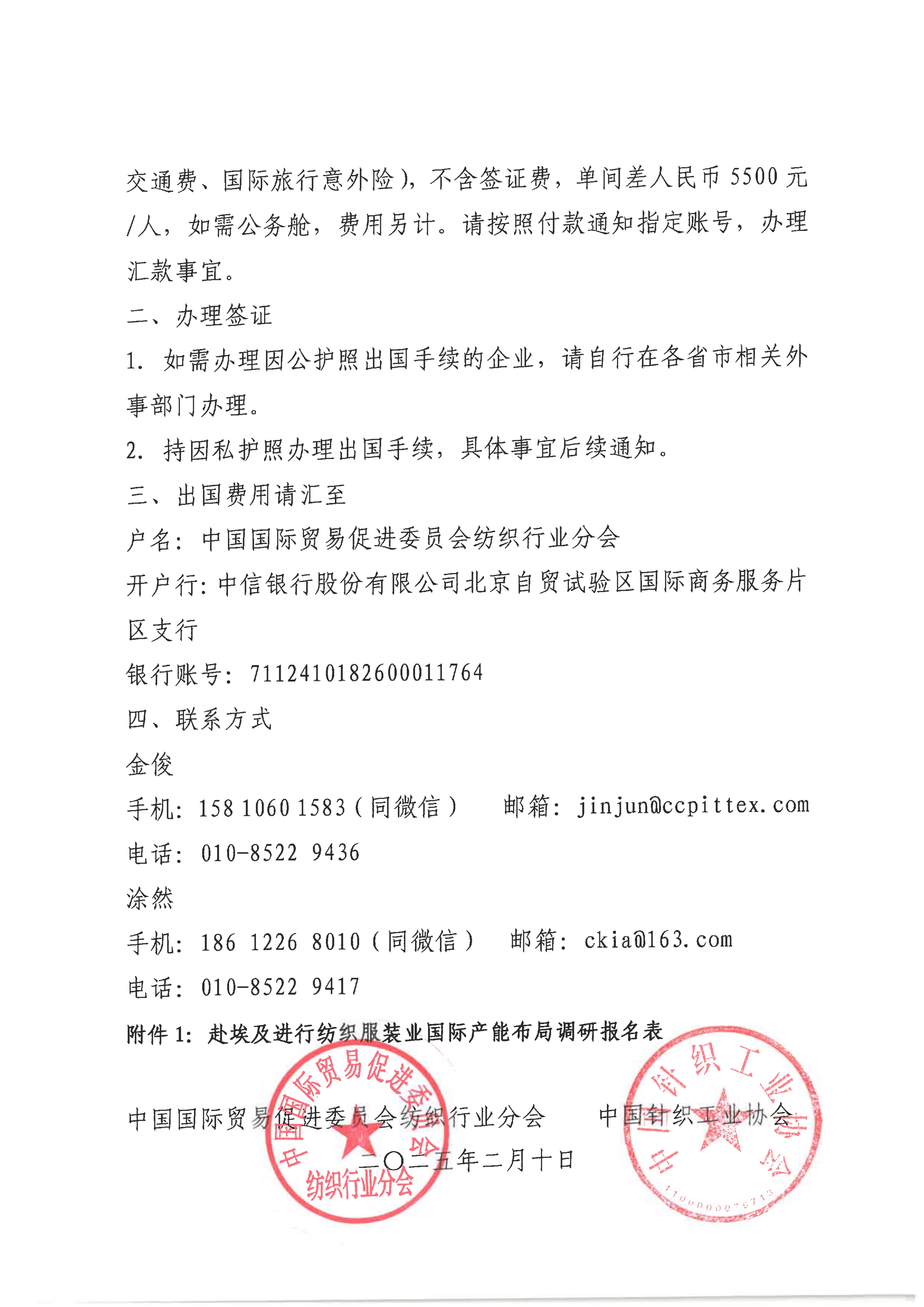 赴埃及進(jìn)行紡織服裝業(yè)國際產(chǎn)能布局調(diào)研報名表
