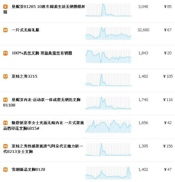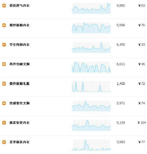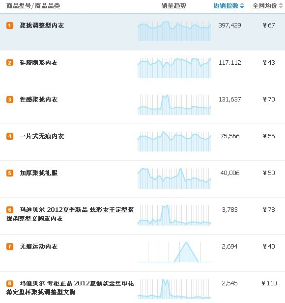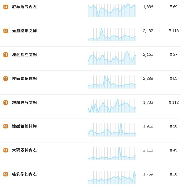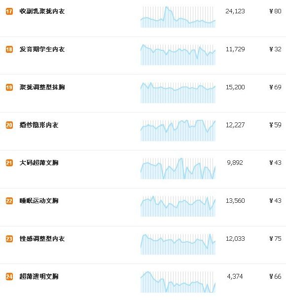 以下是在文胸類目下購買內衣的人群偏好 最近30天(2013-06-15至2013-07-14)
