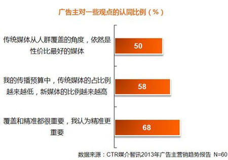 認同傳統(tǒng)媒體的覆蓋效果,追求新媒體和精準仍是熱點 廣告主的媒介策略越來越融合,在整個大策略中,不同媒介扮演的角色不同。